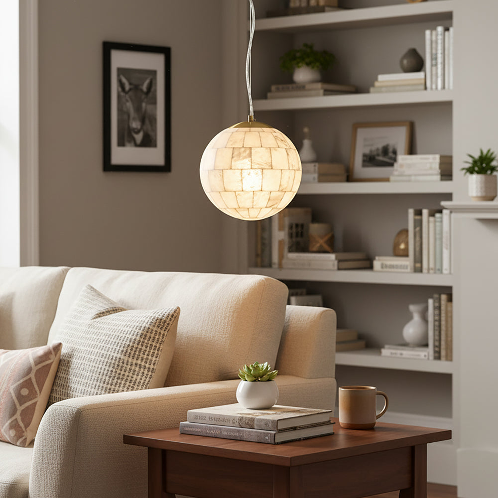 3. Ball Modern Alabaster Pendant Light (Vertical, Focus, Dining Room, Transparency)