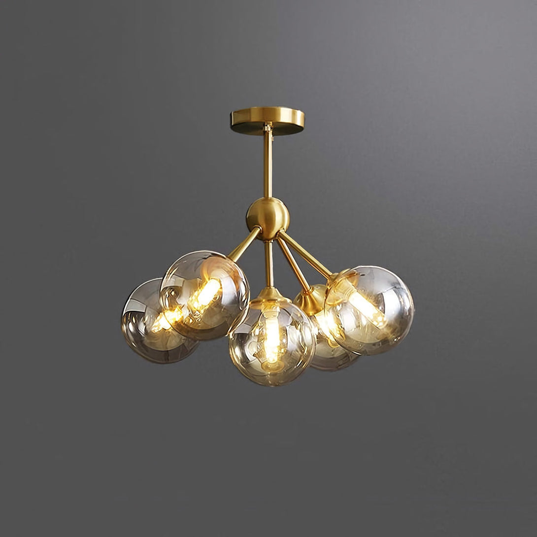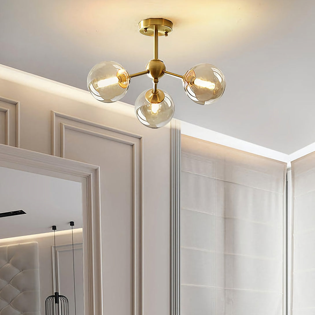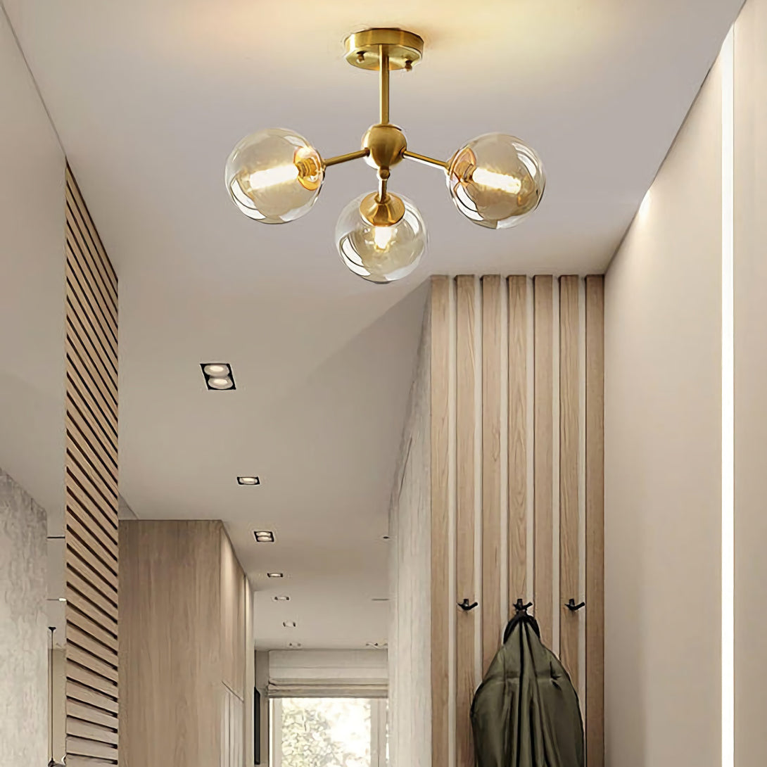 The Branch Spherical Ceiling Light from korewolamp brings a refined balance of elegance and modern charm to your home. Designed with a sturdy brass-finished metal frame, it showcases a dual glass ball structure that radiates sophistication while ensuring durability. The golden tones diffuse a warm, inviting glow, creating a cozy yet stylish atmosphere. Perfect for hallways, bedrooms, or living spaces, this flush mount fixture adds a touch of contemporary glamour while harmonizing beautifully with a variety of interior décors.