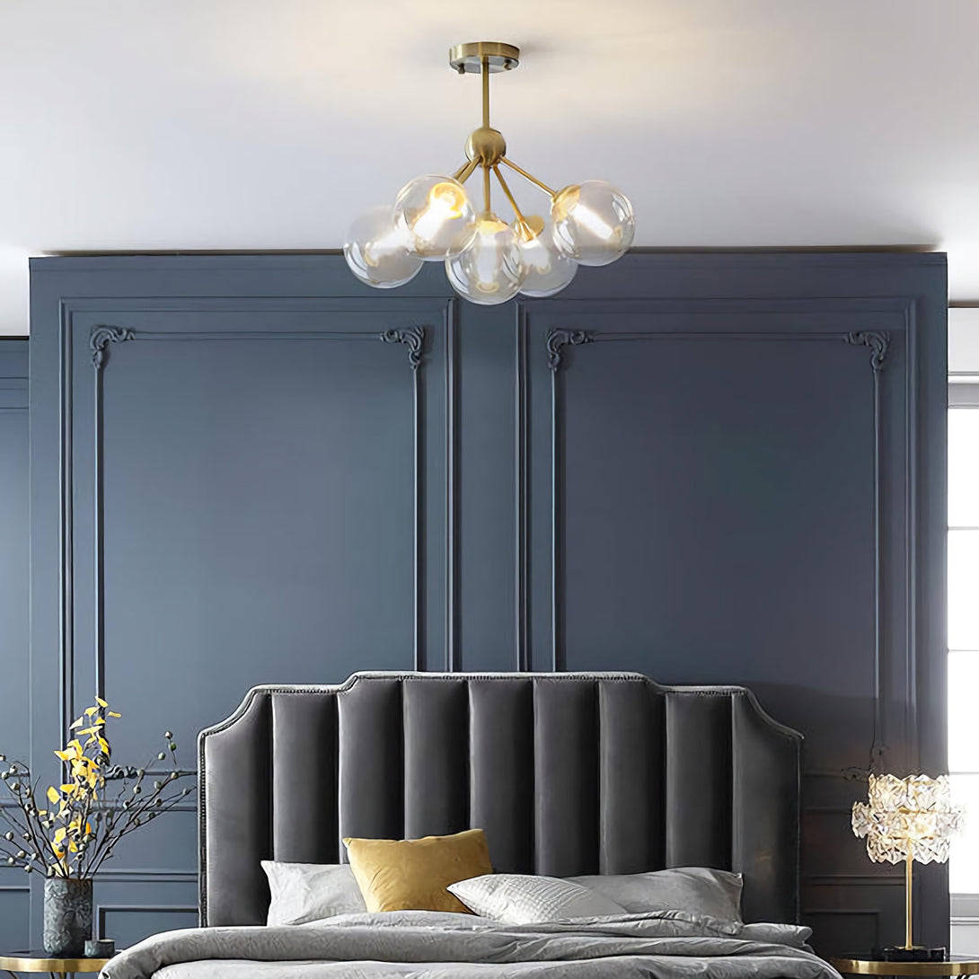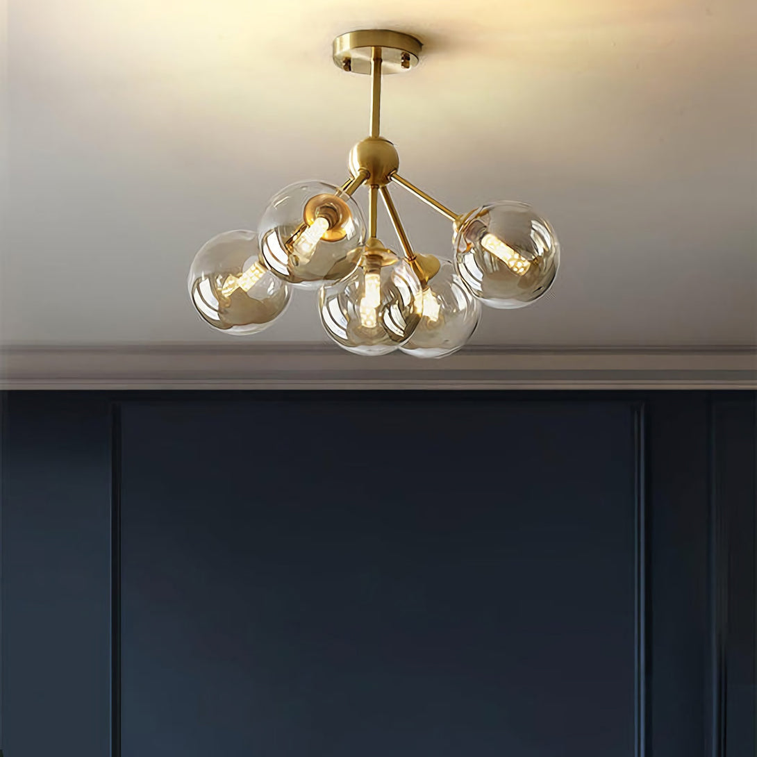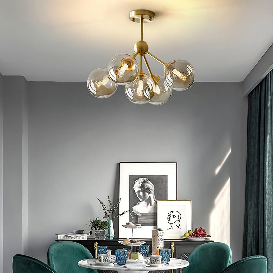 The Branch Spherical Ceiling Light from korewolamp brings a refined balance of elegance and modern charm to your home. Designed with a sturdy brass-finished metal frame, it showcases a dual glass ball structure that radiates sophistication while ensuring durability. The golden tones diffuse a warm, inviting glow, creating a cozy yet stylish atmosphere. Perfect for hallways, bedrooms, or living spaces, this flush mount fixture adds a touch of contemporary glamour while harmonizing beautifully with a variety of interior décors.