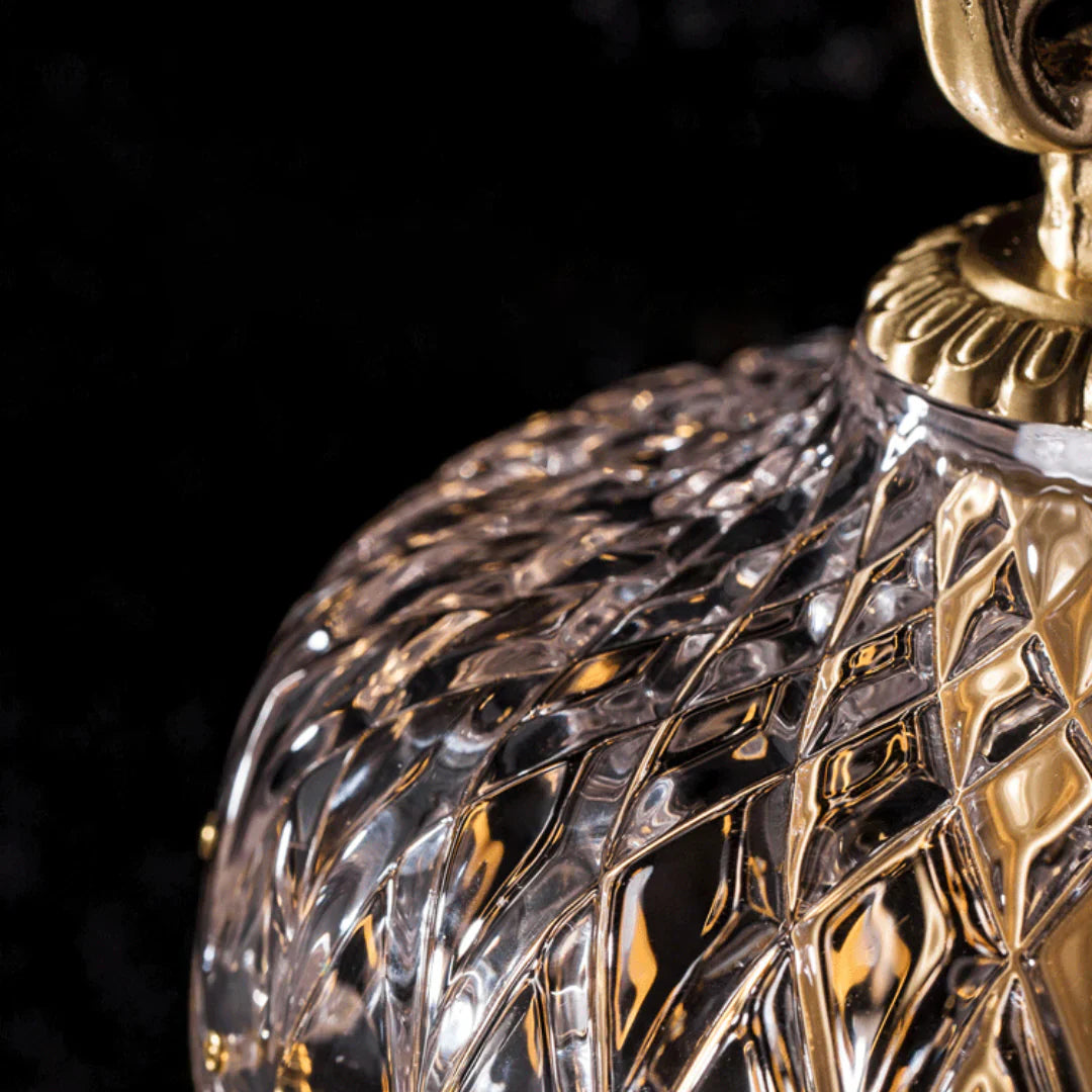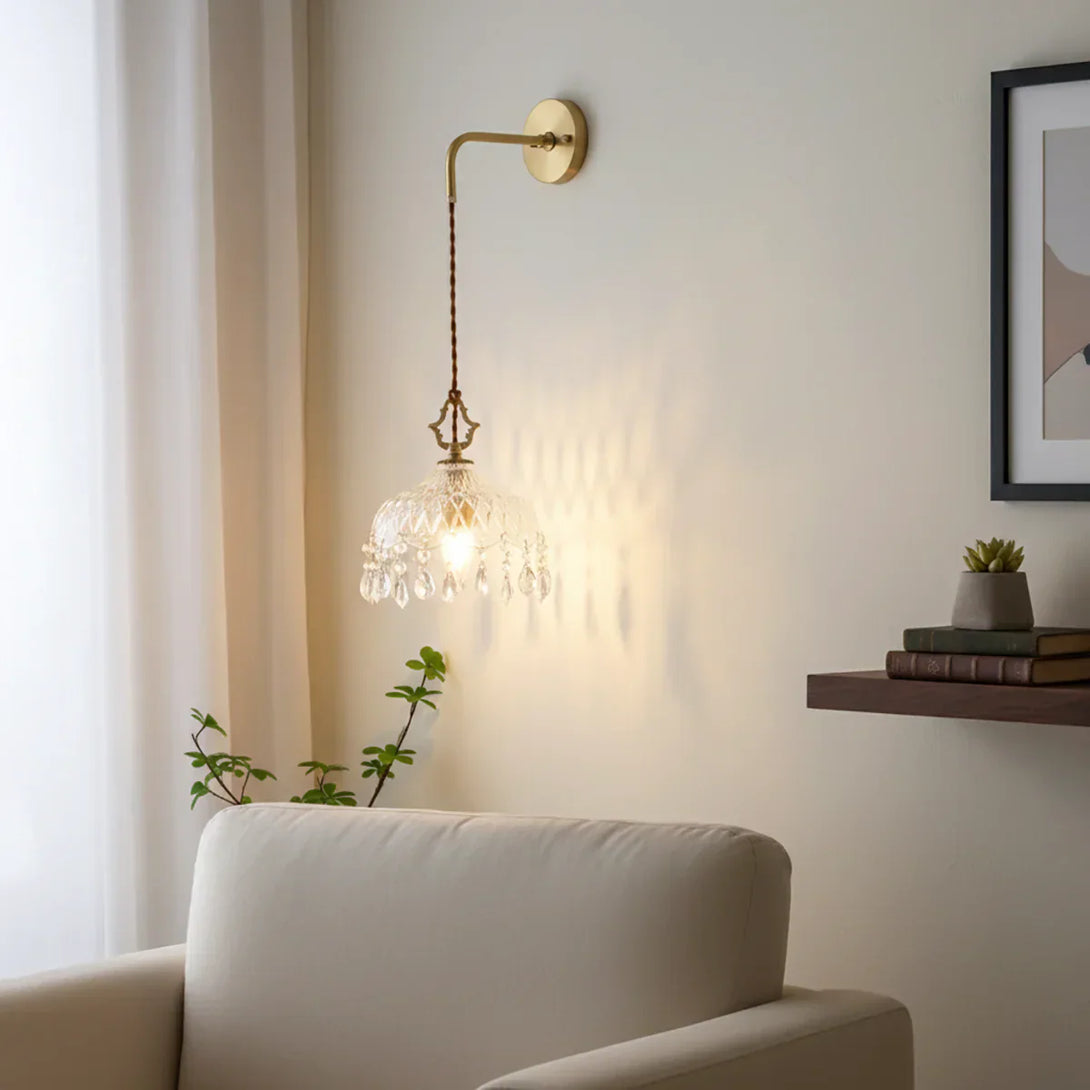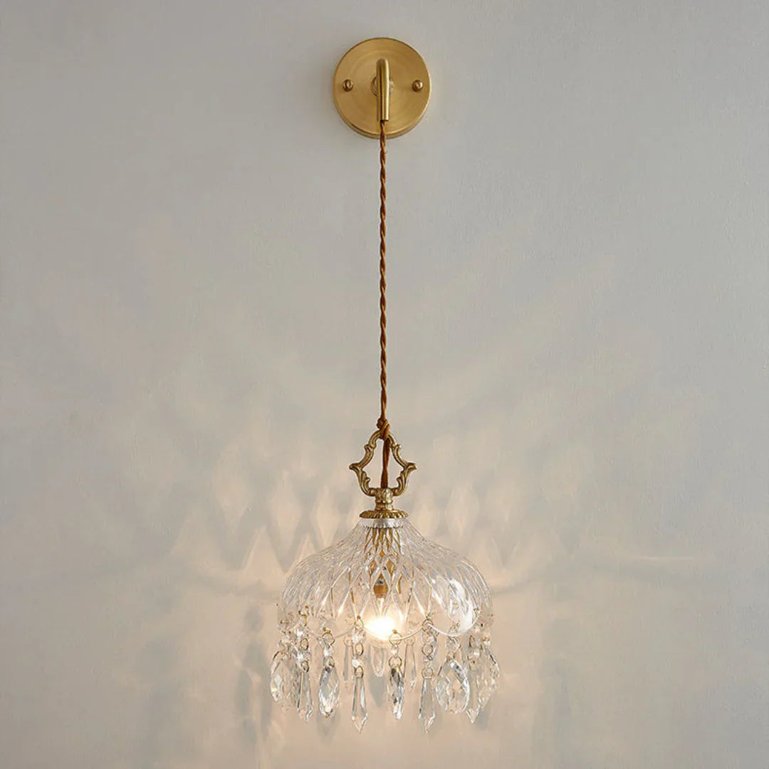 This Alshamal glass wall lamp is perfect for home décor. Its exquisite glass design creates a unique look, making it a striking addition to any room, whether in the bedroom, hallway, dining room, or kitchen.The copper material and retro crystal decor complete this lamp to give it a timeless look. This wall lighting is crafted with precision and care, featuring a robust copper body and intricate glass design that ensures a beautiful addition to any room. Retro crystal decor completes the timeless look, giving it a sophisticated and unique look.