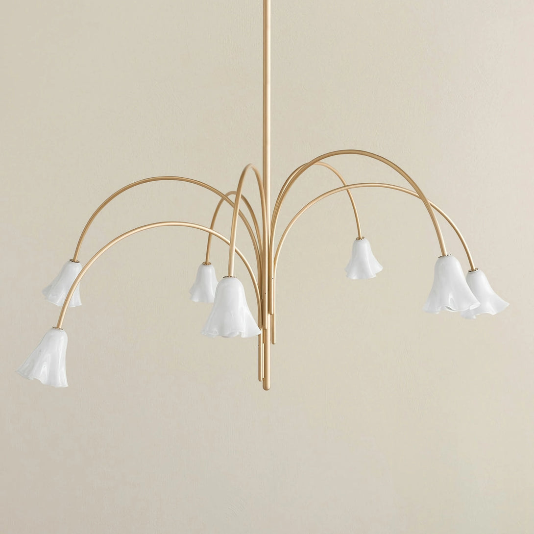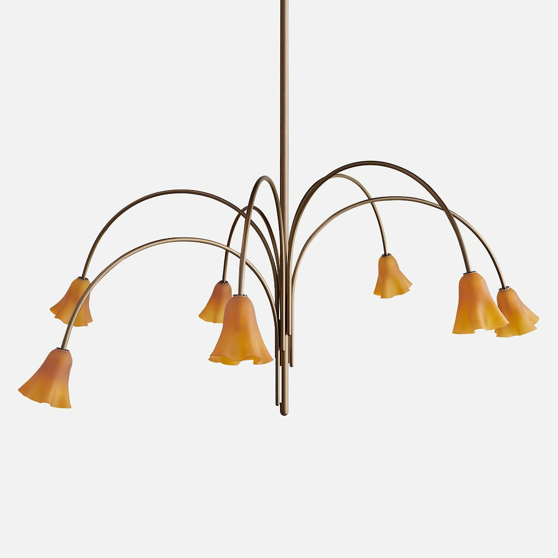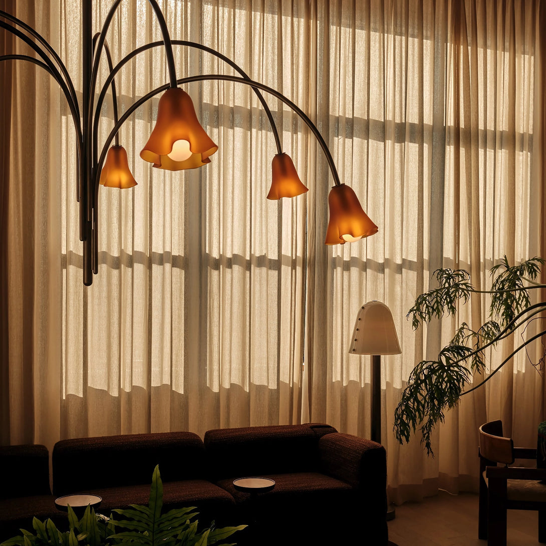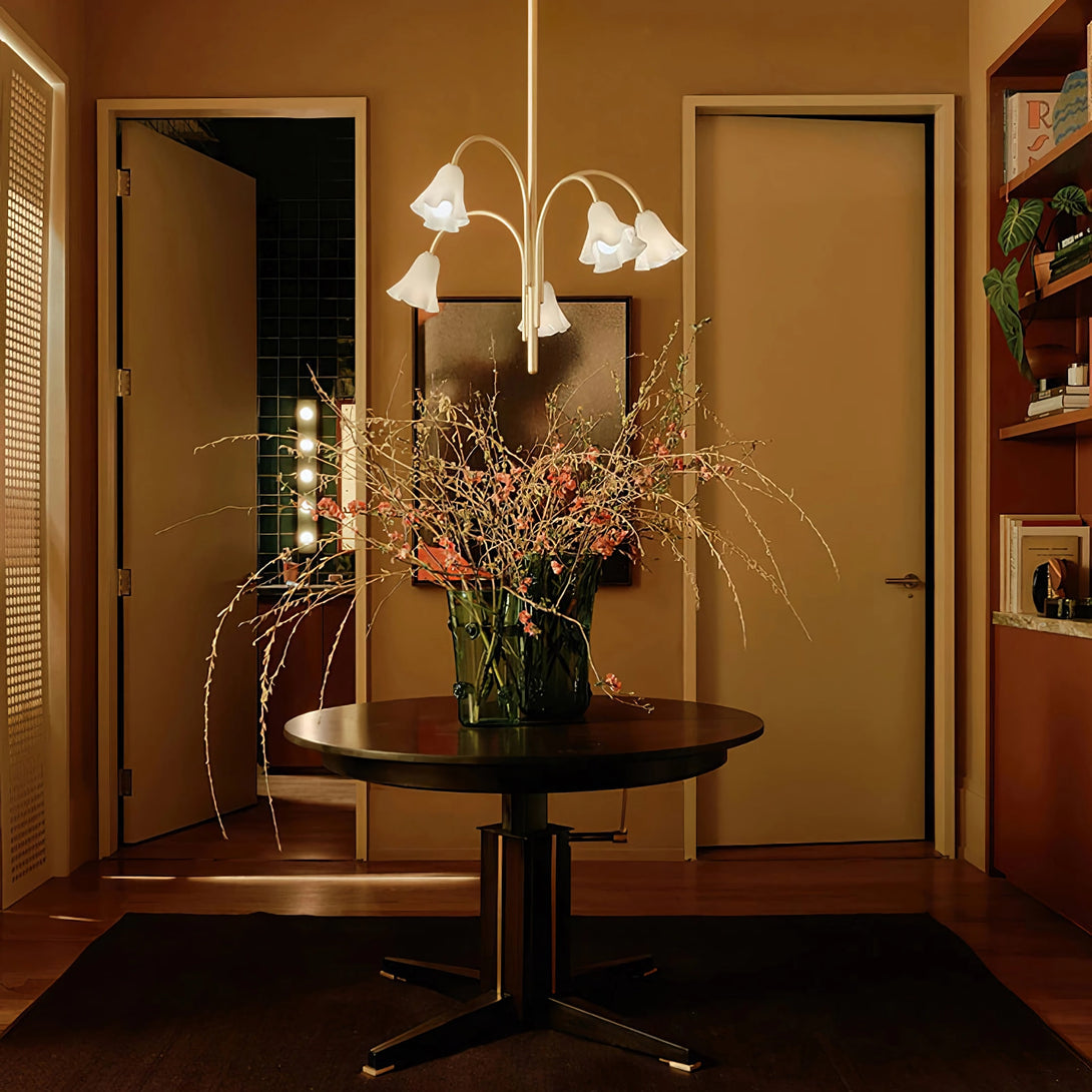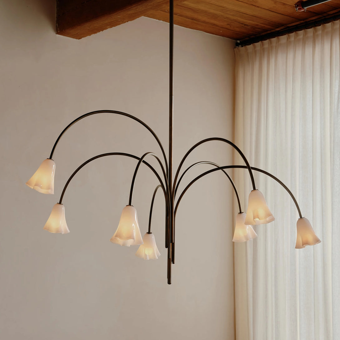 Bring organic elegance into your home with this floral-inspired chandelier. Featuring gracefully curved arms that bloom into delicate glass shades shaped like flower petals, it combines modern minimalism with natural artistry. Available in multiple color options, the soft glow of each shade creates a warm and inviting ambiance, making it an ideal statement piece for dining rooms, living areas, or bedrooms. Both sculptural and functional, this chandelier adds a refined yet whimsical charm to any contemporary interior.