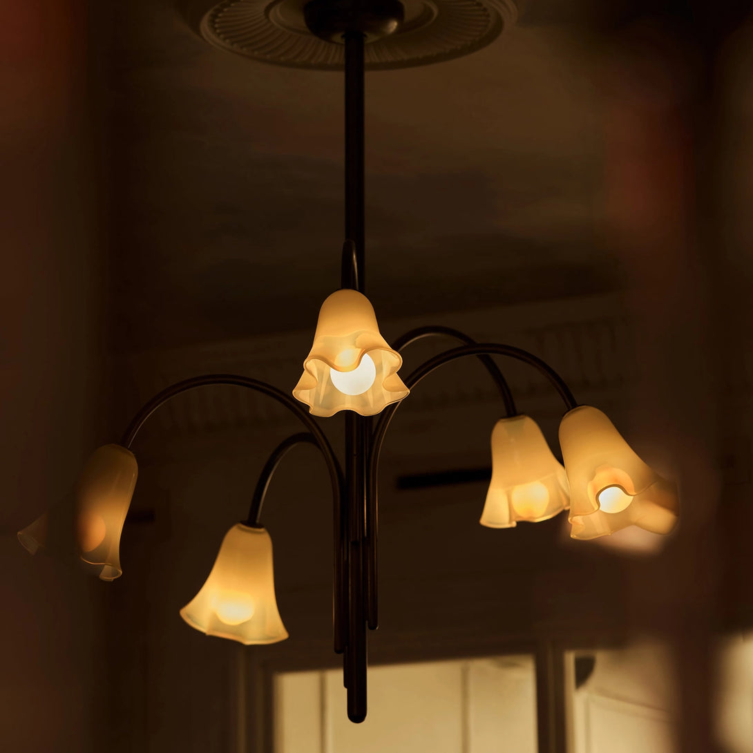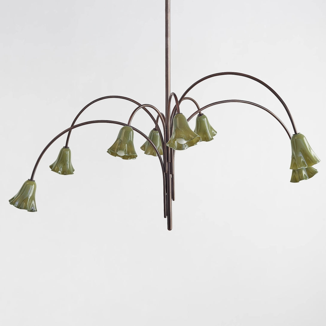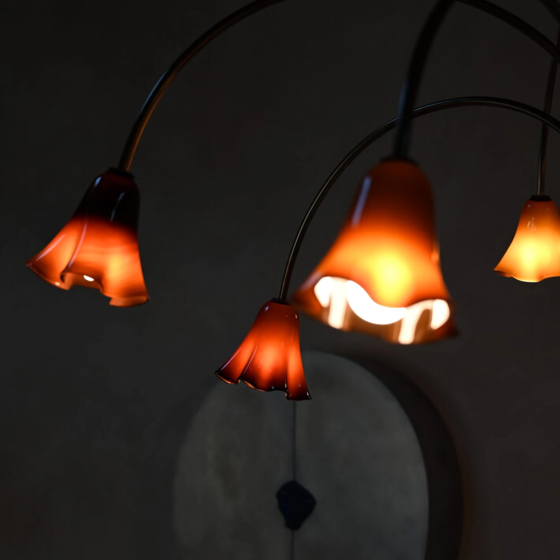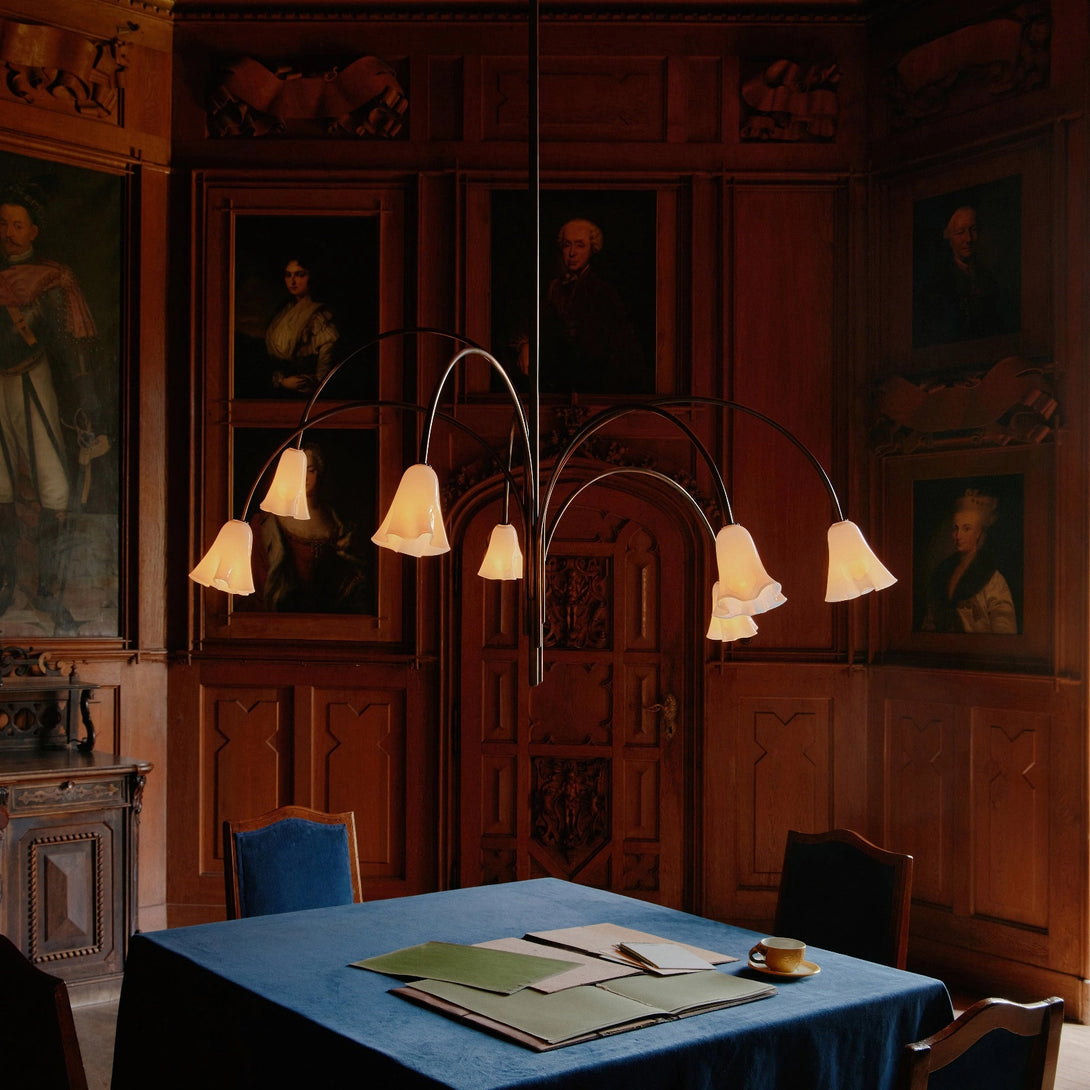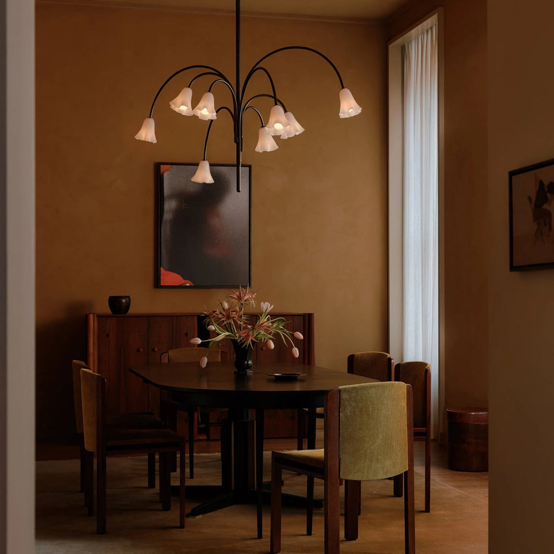 Bring organic elegance into your home with this floral-inspired chandelier. Featuring gracefully curved arms that bloom into delicate glass shades shaped like flower petals, it combines modern minimalism with natural artistry. Available in multiple color options, the soft glow of each shade creates a warm and inviting ambiance, making it an ideal statement piece for dining rooms, living areas, or bedrooms. Both sculptural and functional, this chandelier adds a refined yet whimsical charm to any contemporary interior.