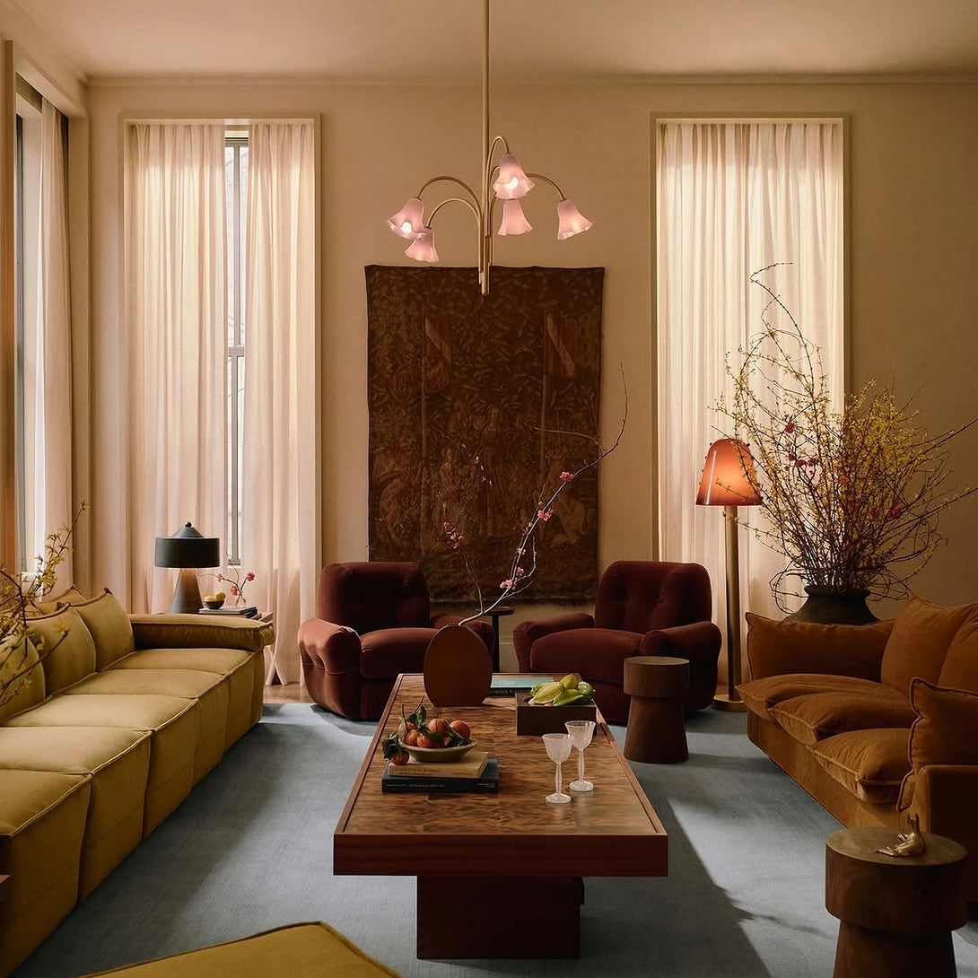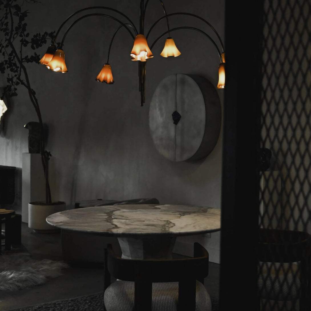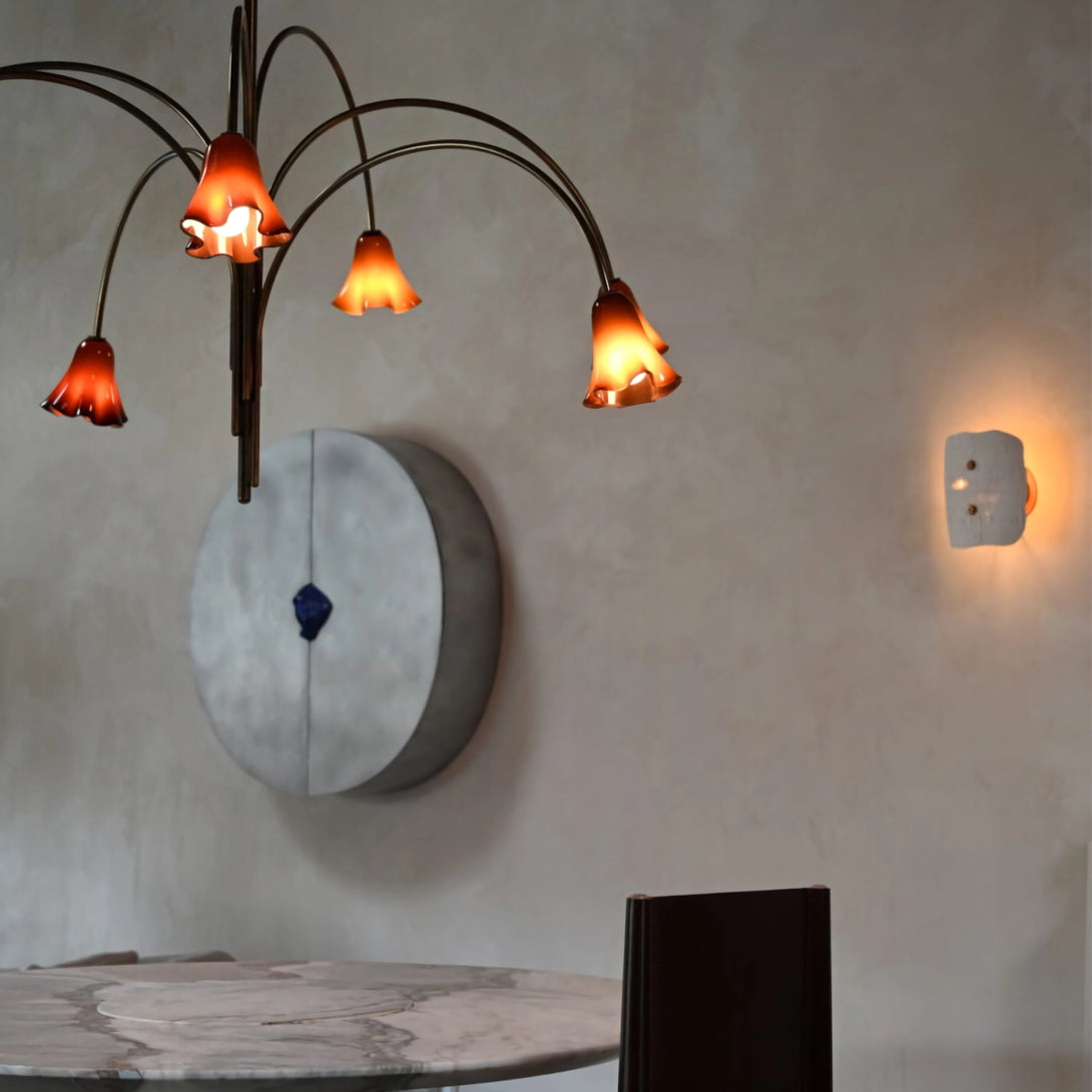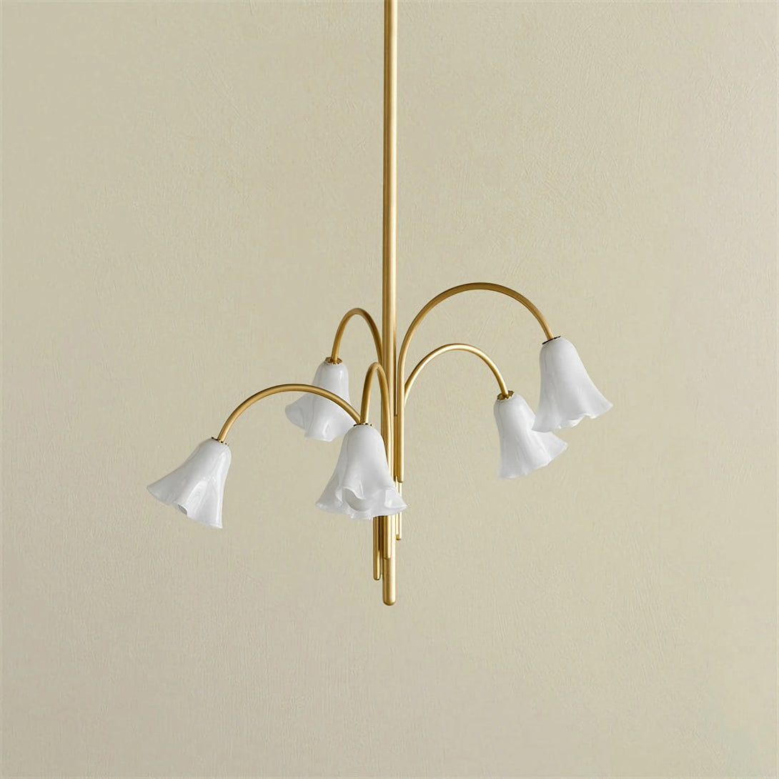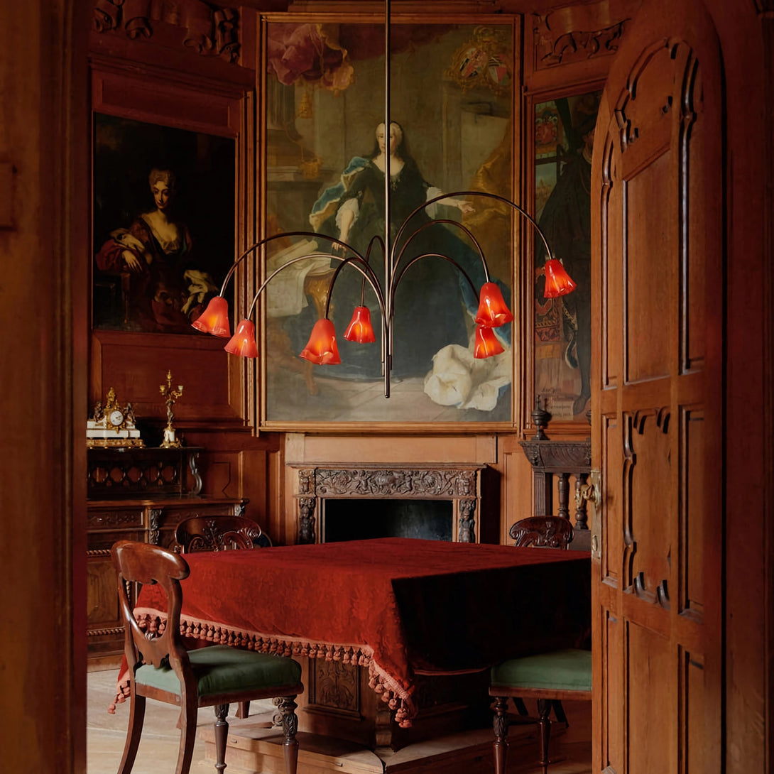 Bring organic elegance into your home with this floral-inspired chandelier. Featuring gracefully curved arms that bloom into delicate glass shades shaped like flower petals, it combines modern minimalism with natural artistry. Available in multiple color options, the soft glow of each shade creates a warm and inviting ambiance, making it an ideal statement piece for dining rooms, living areas, or bedrooms. Both sculptural and functional, this chandelier adds a refined yet whimsical charm to any contemporary interior.