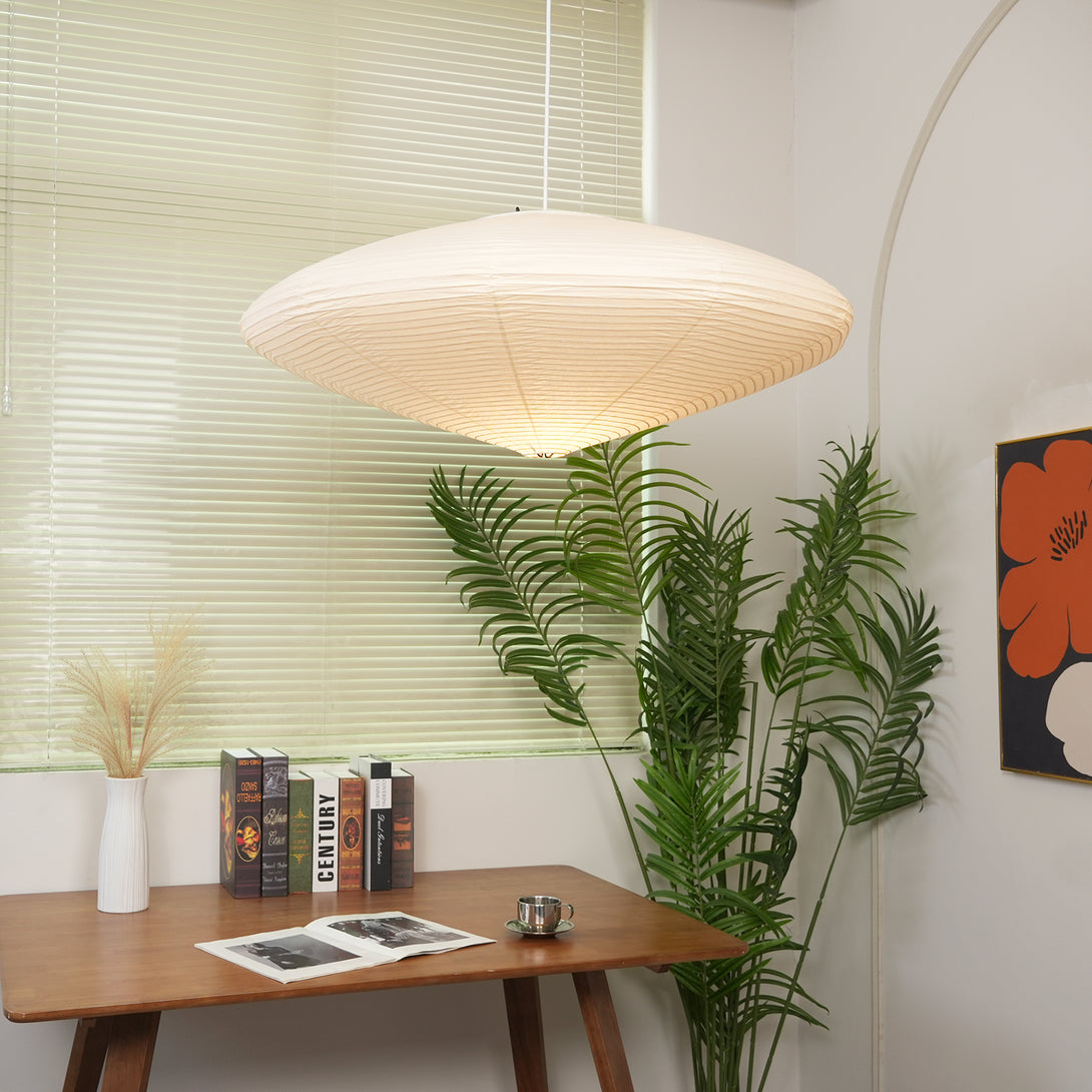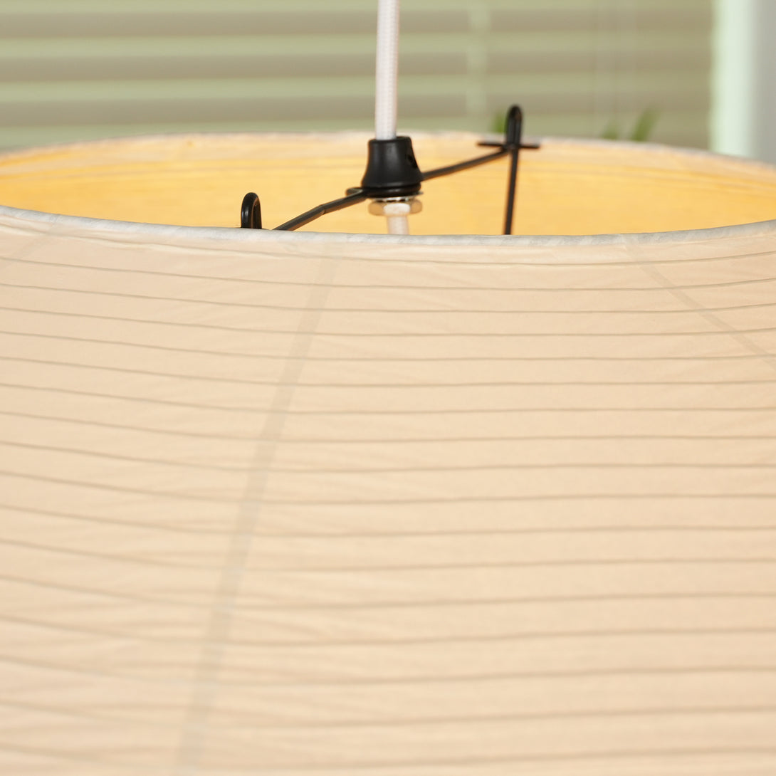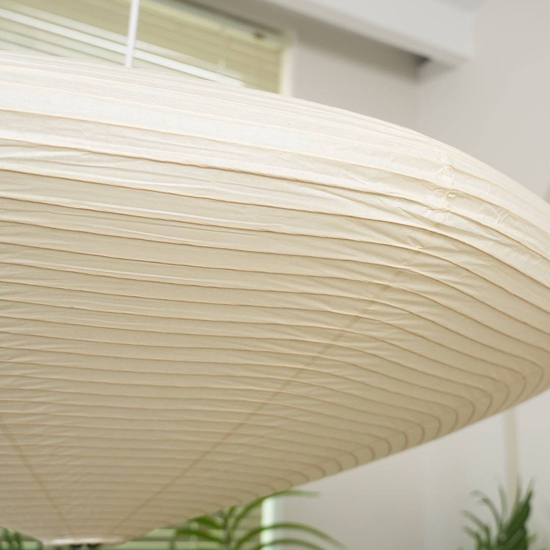 Discover the Akari 26A / 21A / 15A Pendant Light, our Japanese paper pendant lamp, which embodies tranquil minimalism and timeless elegance. Inspired by the exquisite craftsmanship of Japanese lighting, this lamp is handcrafted from delicate, translucent Japanese paper, wrapped around a lightweight inner frame. The light is reminiscent of sunlight filtering through traditional shoji screens, creating a gentle ambiance perfect for relaxation and contemplation. The delicate ribbing in the paper lends the lamp a beautiful, natural texture, adding a layer of visual interest to its simple form.