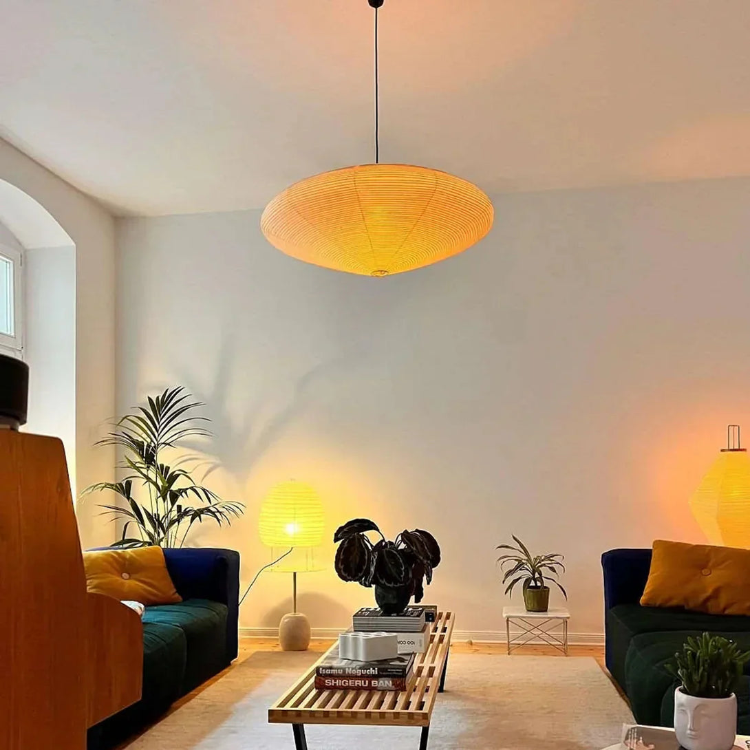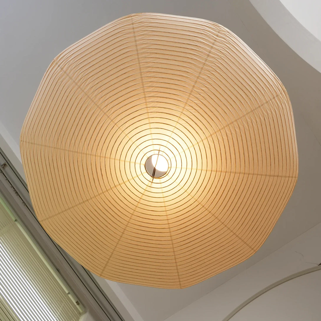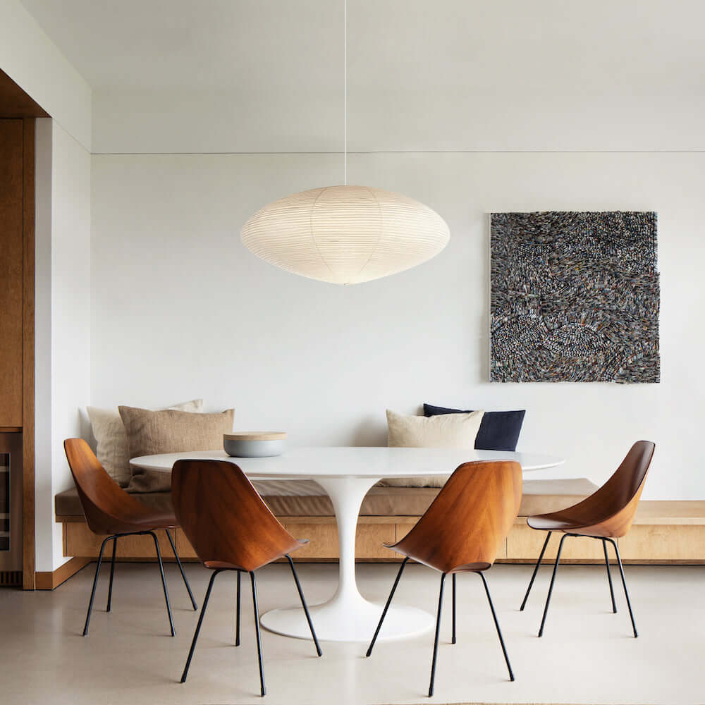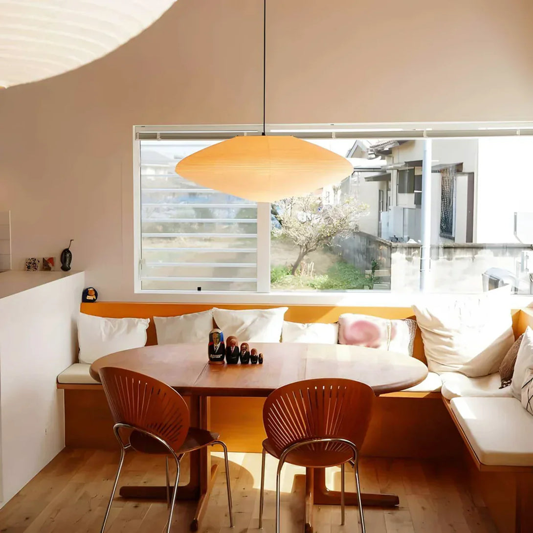 Experience the exquisite beauty of the Akari 26A / 21A / 15A Pendant Lights. Each lamp is meticulously handcrafted using soft washi paper made from delicate mulberry bark, emitting a warm and captivating glow, much like the light and shadow cast by sunlight through traditional shoji doors. These sculptural lamps create a tranquil and elegant atmosphere, transforming ordinary spaces into sanctuaries of understated luxury.