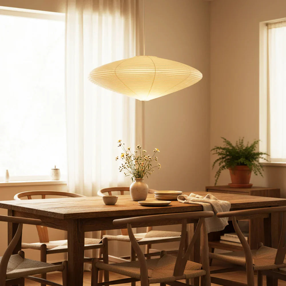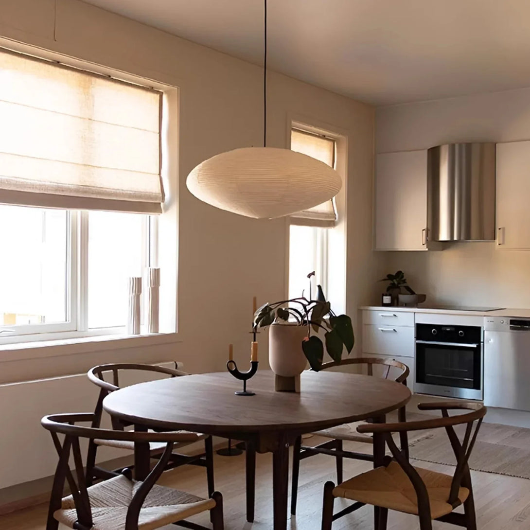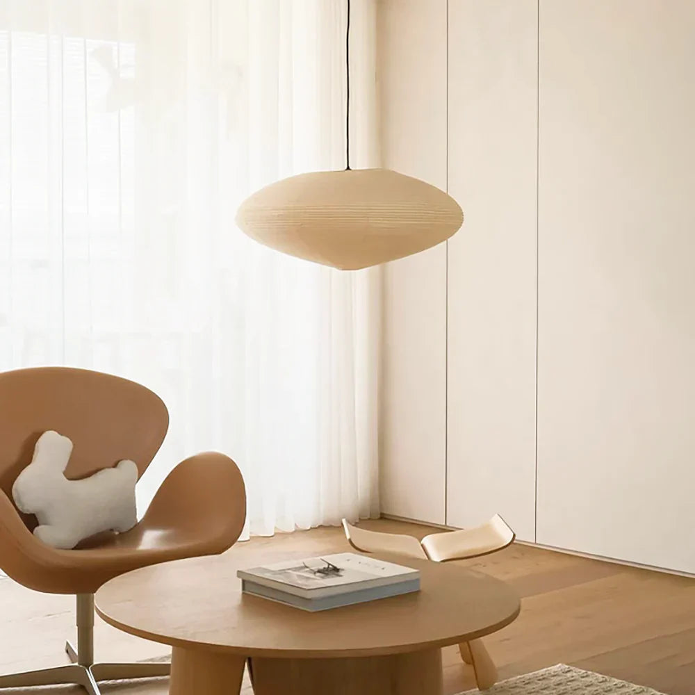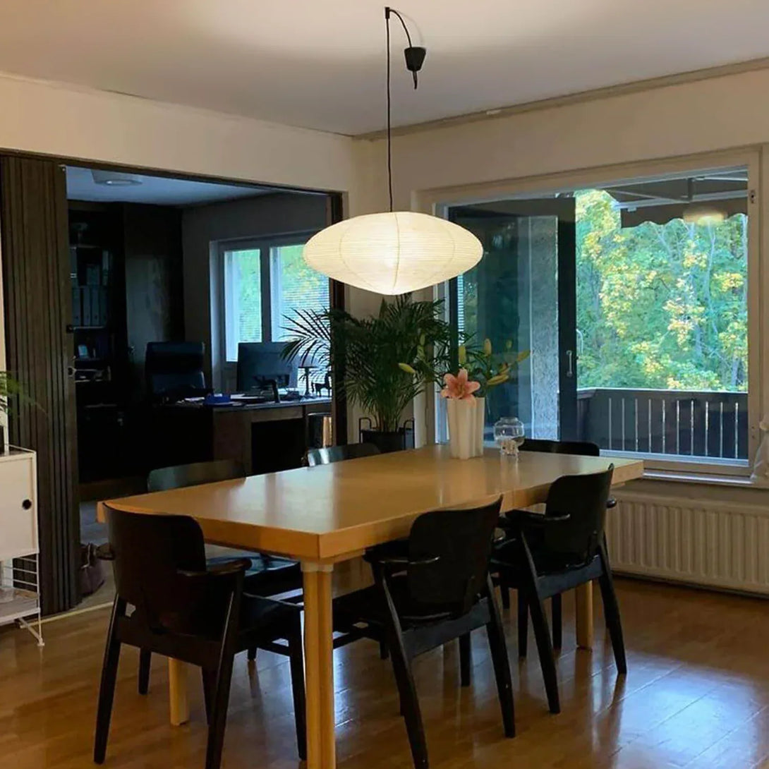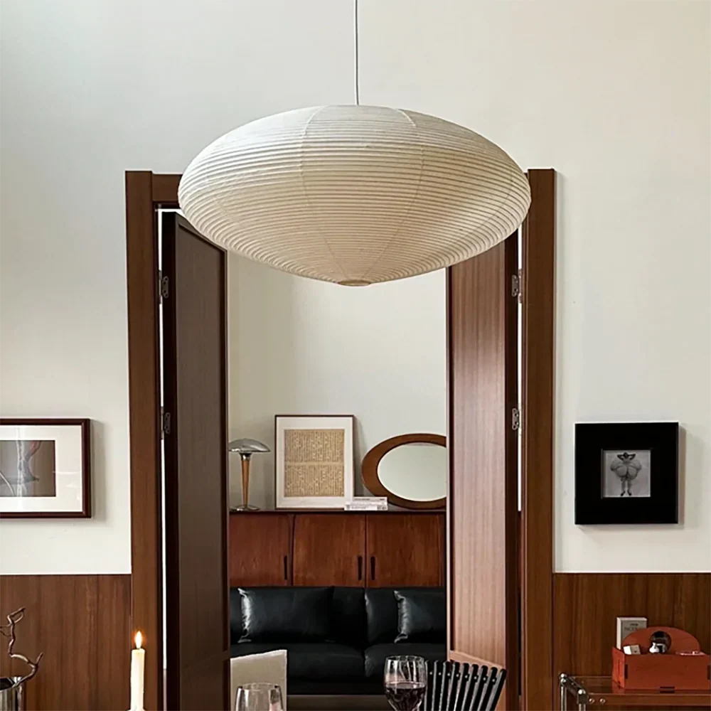 Experience the exquisite beauty of the Akari 26A / 21A / 15A Pendant Lights. Each lamp is meticulously handcrafted using soft washi paper made from delicate mulberry bark, emitting a warm and captivating glow, much like the light and shadow cast by sunlight through traditional shoji doors. These sculptural lamps create a tranquil and elegant atmosphere, transforming ordinary spaces into sanctuaries of understated luxury.