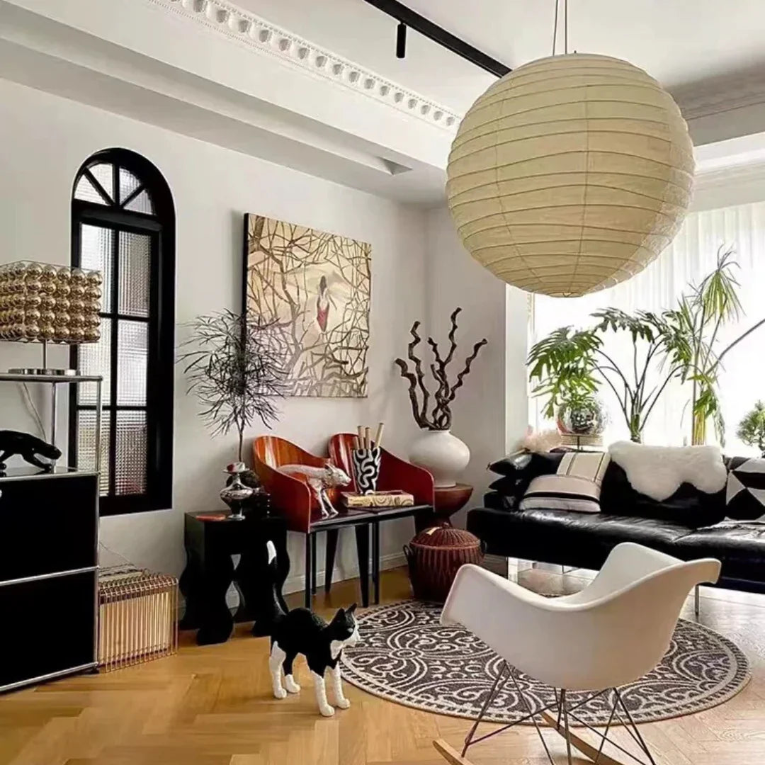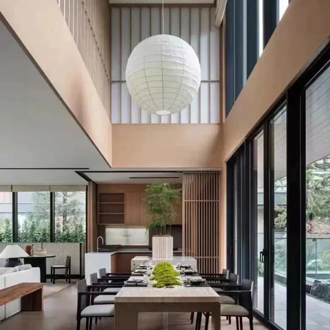 Explore the timeless charm of the Akari 55D and 75D Pendant Lamps, experiencing the perfect fusion of traditional craftsmanship and modern design. Each lamp is handcrafted with washi paper and secured with a sturdy metal frame for durability. Its soft, diffused light and understated elegance add brilliance to any space.