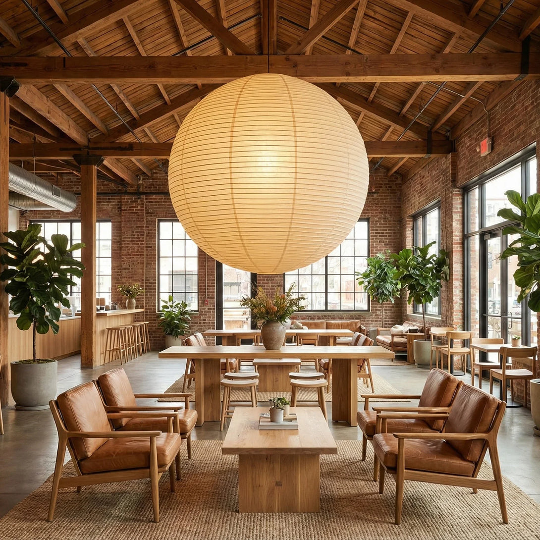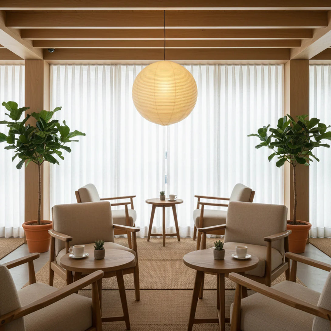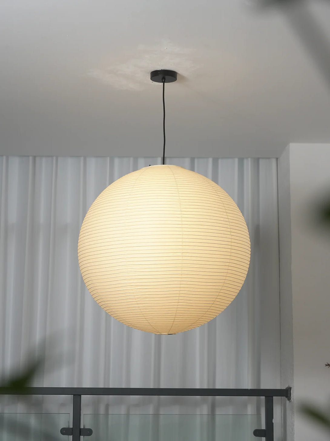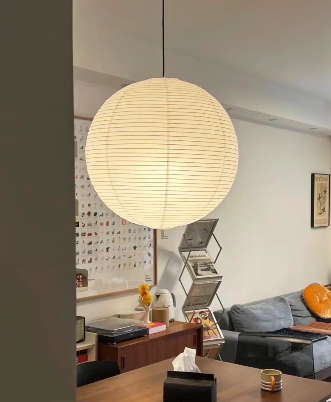 The Akari A Pendant Light is an iconic lighting design imbued with the essence of Japanese aesthetics and wabi-sabi. Its unique charm adds a tranquil and warm atmosphere to any space, perfectly blending traditional craftsmanship with modern minimalism. The lampshade is constructed from high-quality washi paper wrapped around a lightweight metal frame. It emits a warm, soft, and diffused light, instantly elevating the overall style and comfort of a room.