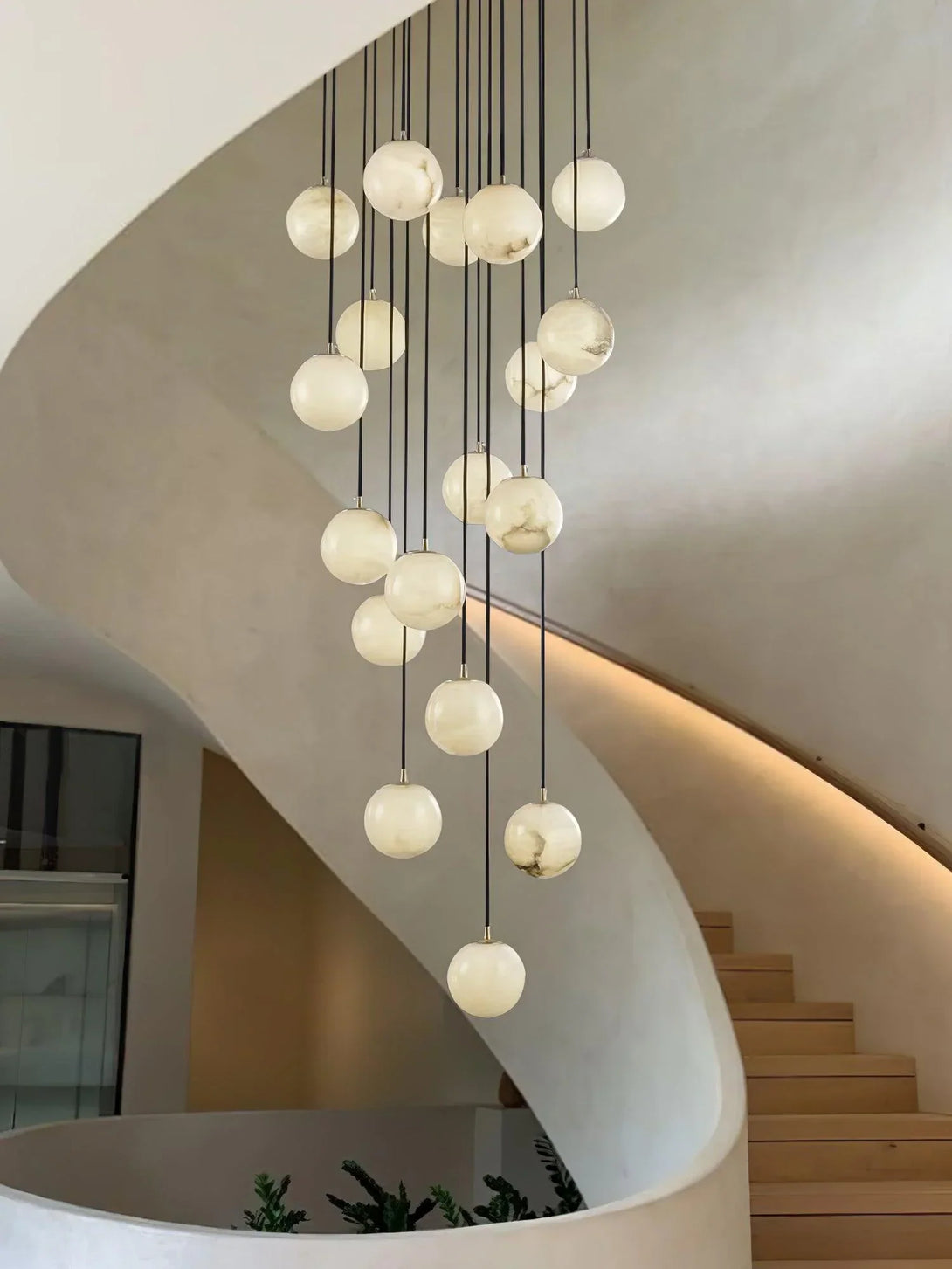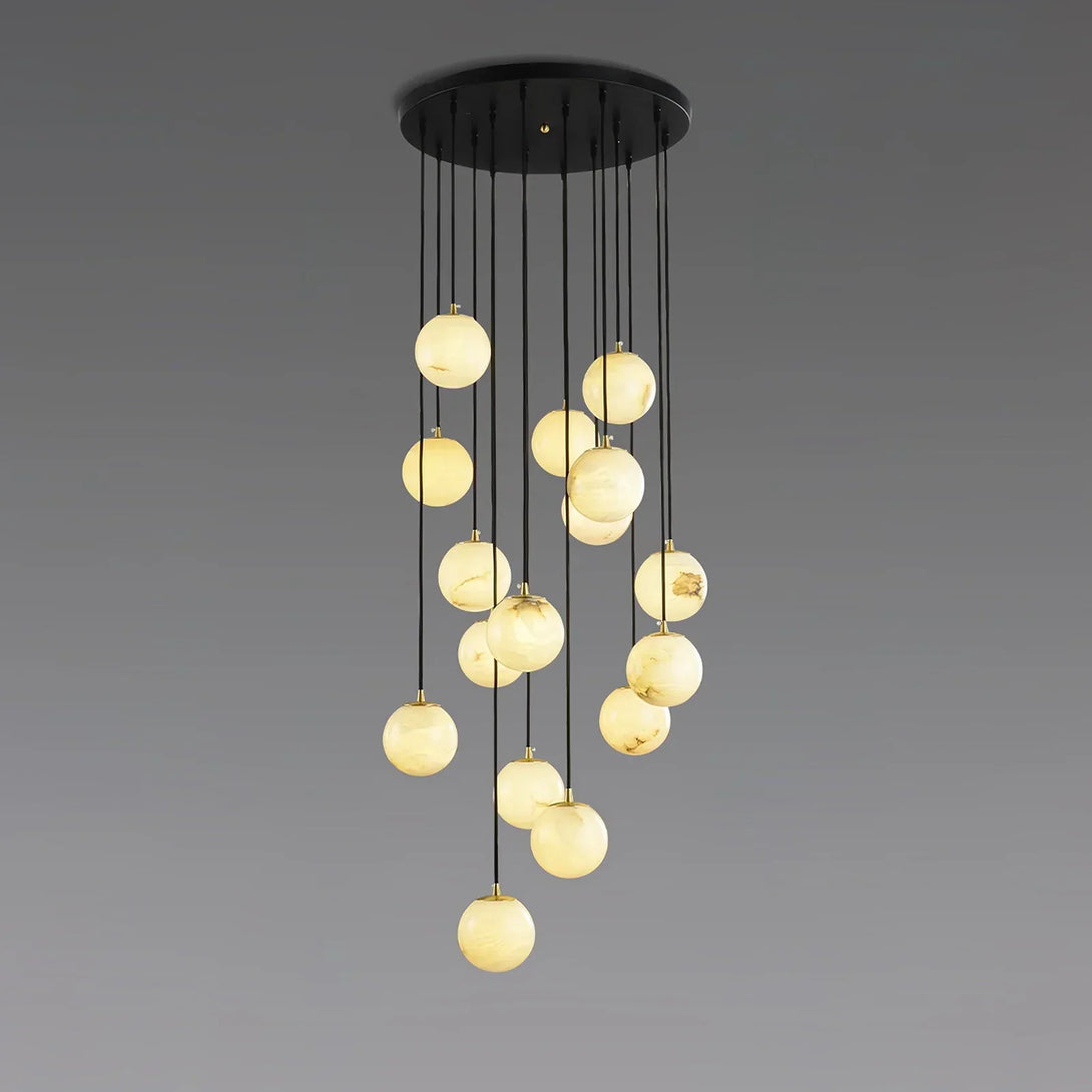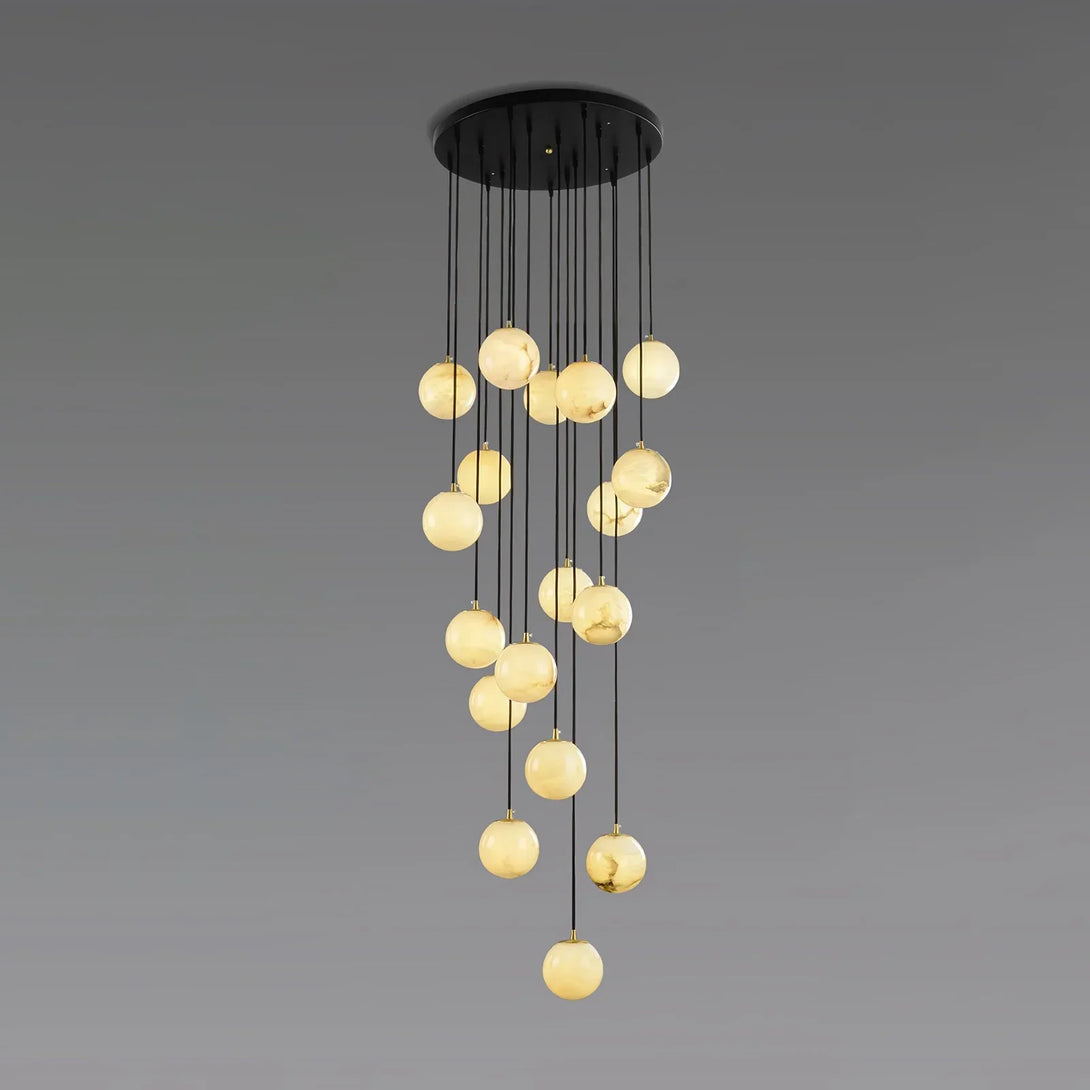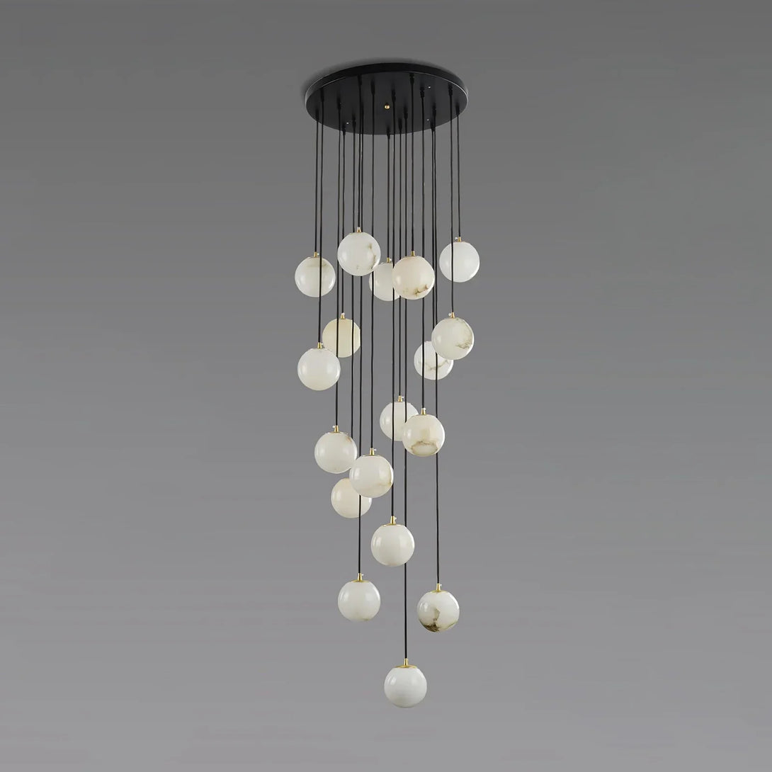 The Alabaster Balls Cluster Chandelier is a striking modern design that infuses your space with elegant sophistication. It features multiple glowing alabaster spheres arranged in layered clusters beneath a sleek circular canopy, each orb carefully crafted to emit a gentle, ambient light that cascades gracefully. This delicate chandelier serves as a stunning centerpiece, ideal for cultivating a serene and refined atmosphere. Whether lit or unlit, it offers a mesmerizing visual appeal that captures attention and sparks conversation.