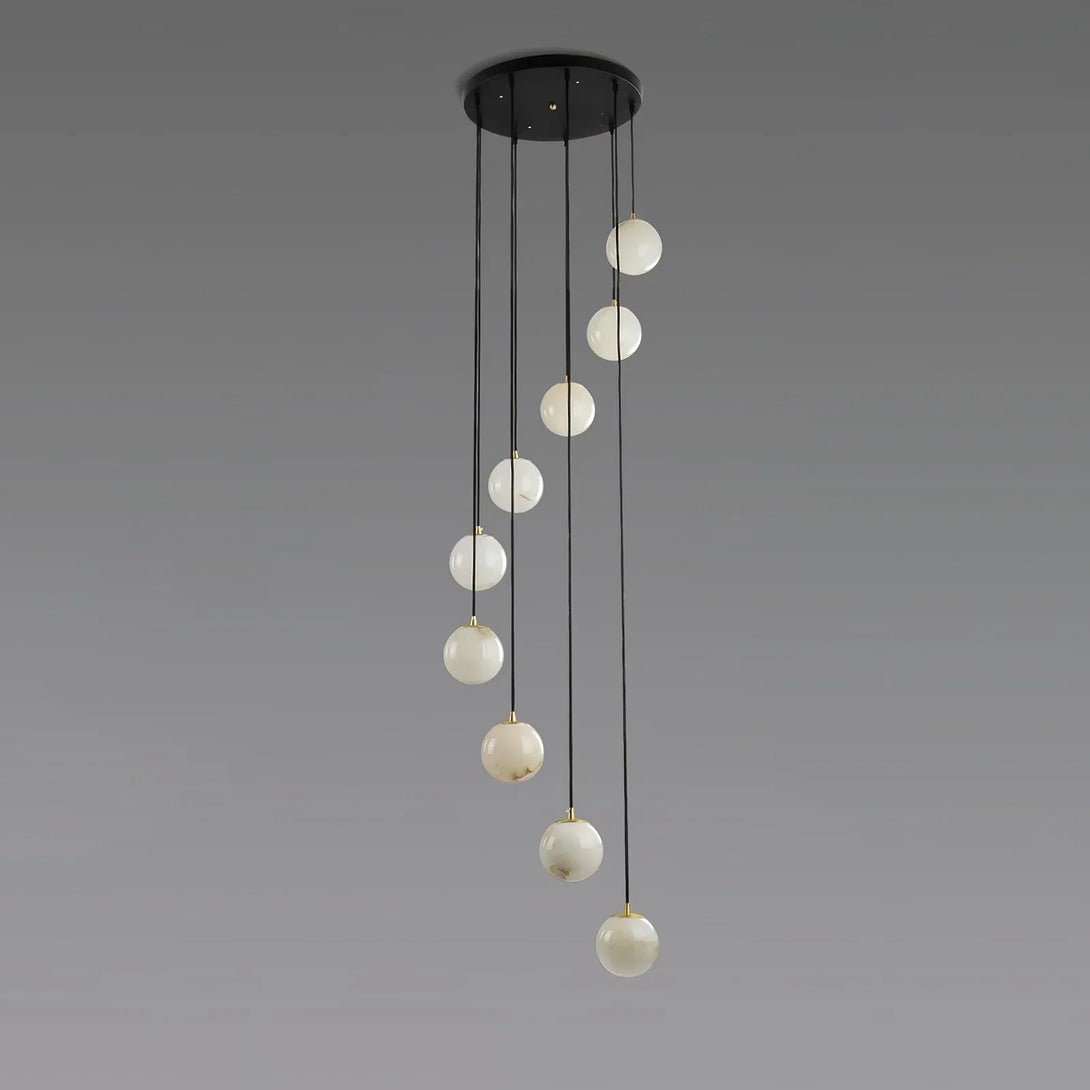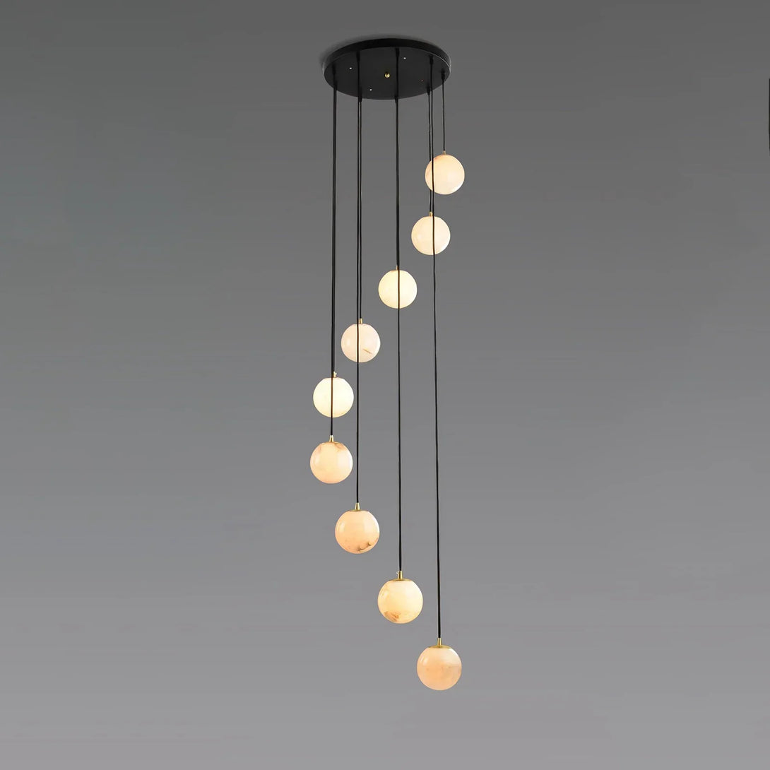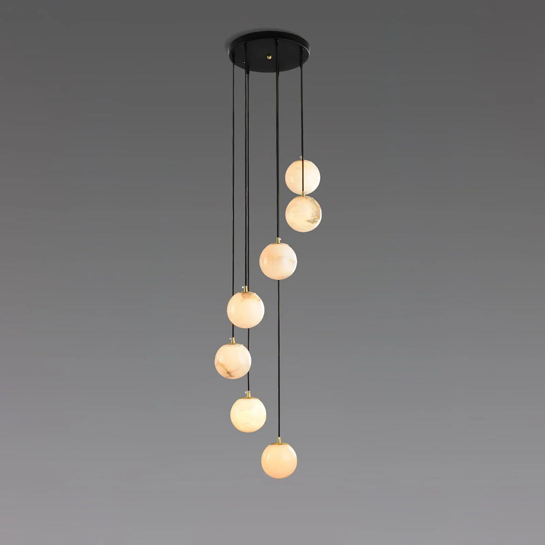 The Alabaster Balls Cluster Chandelier is a striking modern design that infuses your space with elegant sophistication. It features multiple glowing alabaster spheres arranged in layered clusters beneath a sleek circular canopy, each orb carefully crafted to emit a gentle, ambient light that cascades gracefully. This delicate chandelier serves as a stunning centerpiece, ideal for cultivating a serene and refined atmosphere. Whether lit or unlit, it offers a mesmerizing visual appeal that captures attention and sparks conversation.