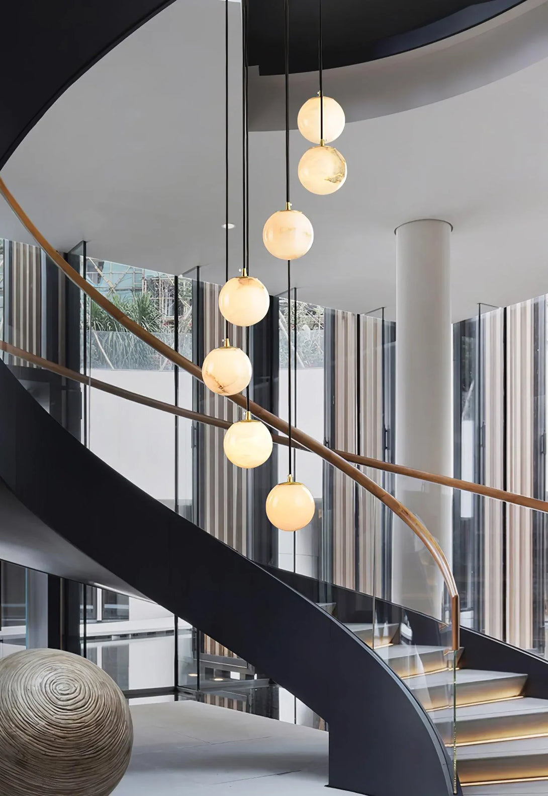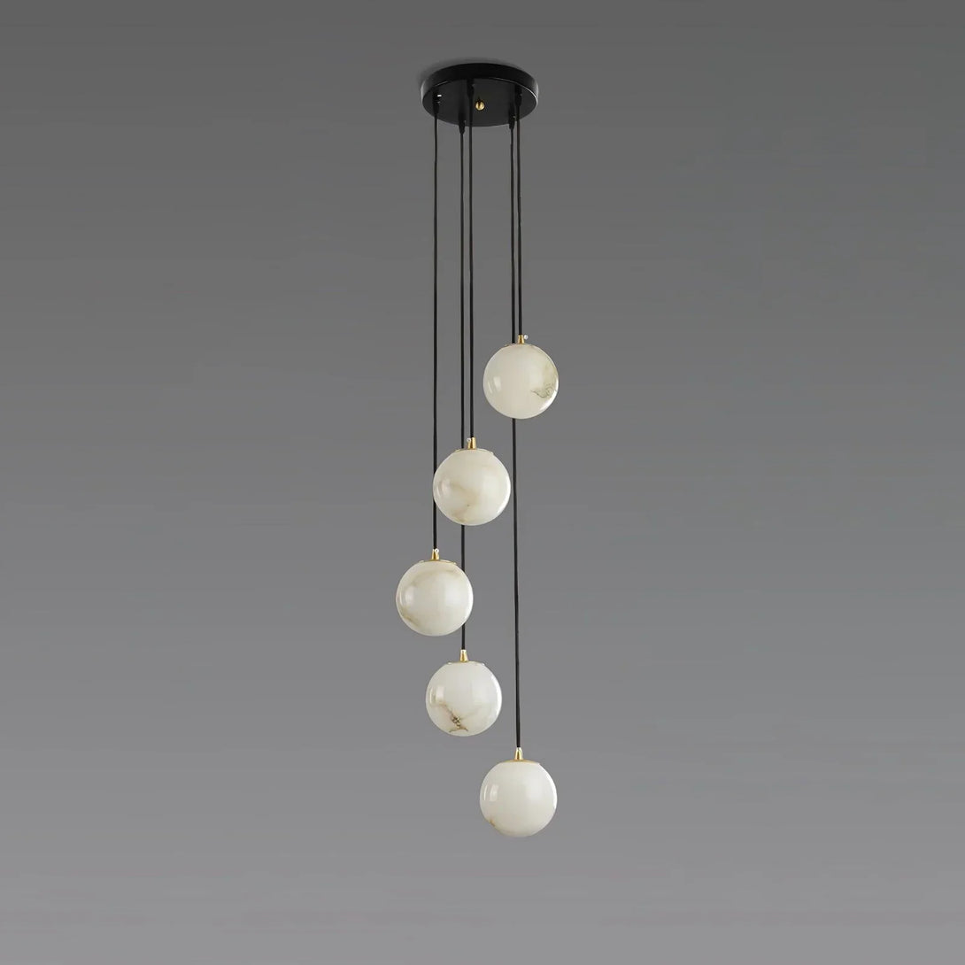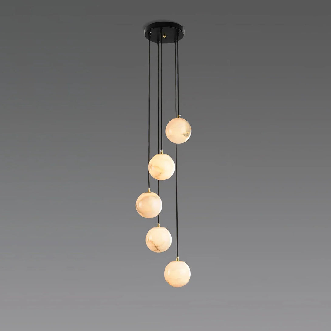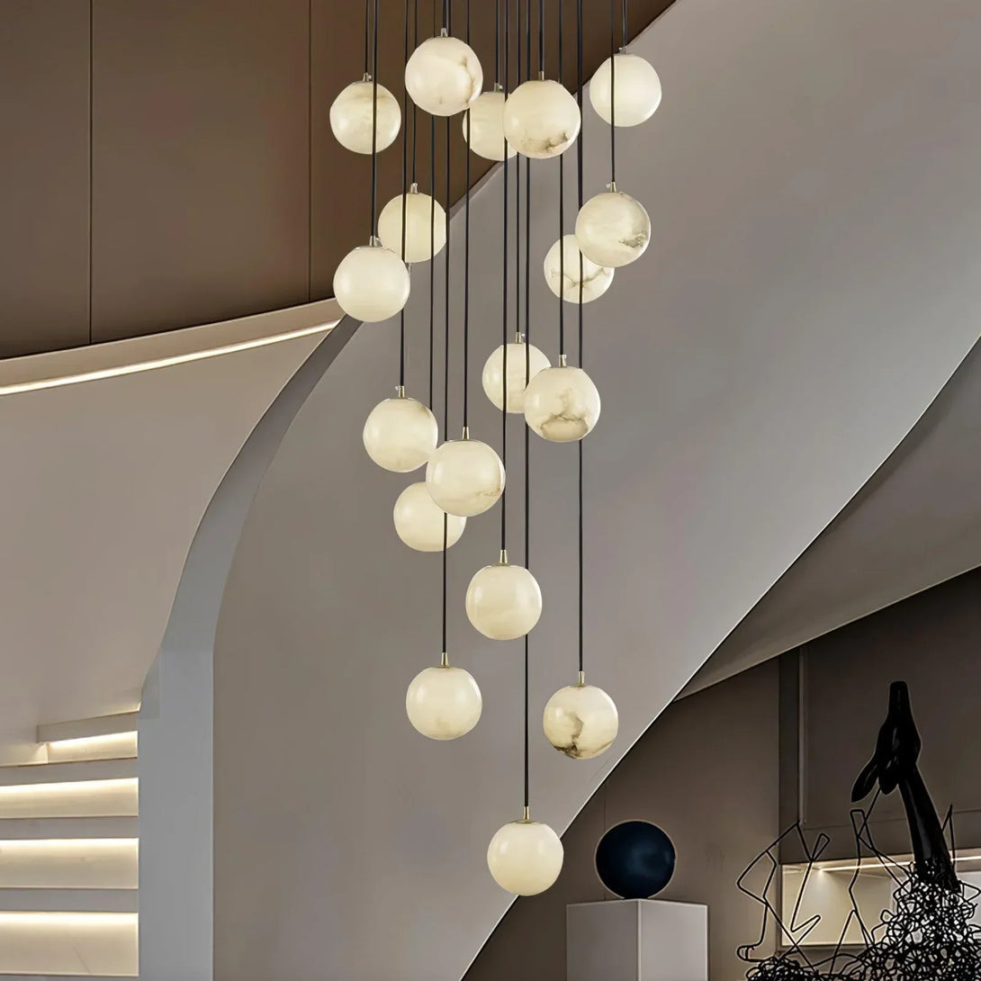 The Alabaster Balls Cluster Chandelier is a striking modern design that infuses your space with elegant sophistication. It features multiple glowing alabaster spheres arranged in layered clusters beneath a sleek circular canopy, each orb carefully crafted to emit a gentle, ambient light that cascades gracefully. This delicate chandelier serves as a stunning centerpiece, ideal for cultivating a serene and refined atmosphere. Whether lit or unlit, it offers a mesmerizing visual appeal that captures attention and sparks conversation.