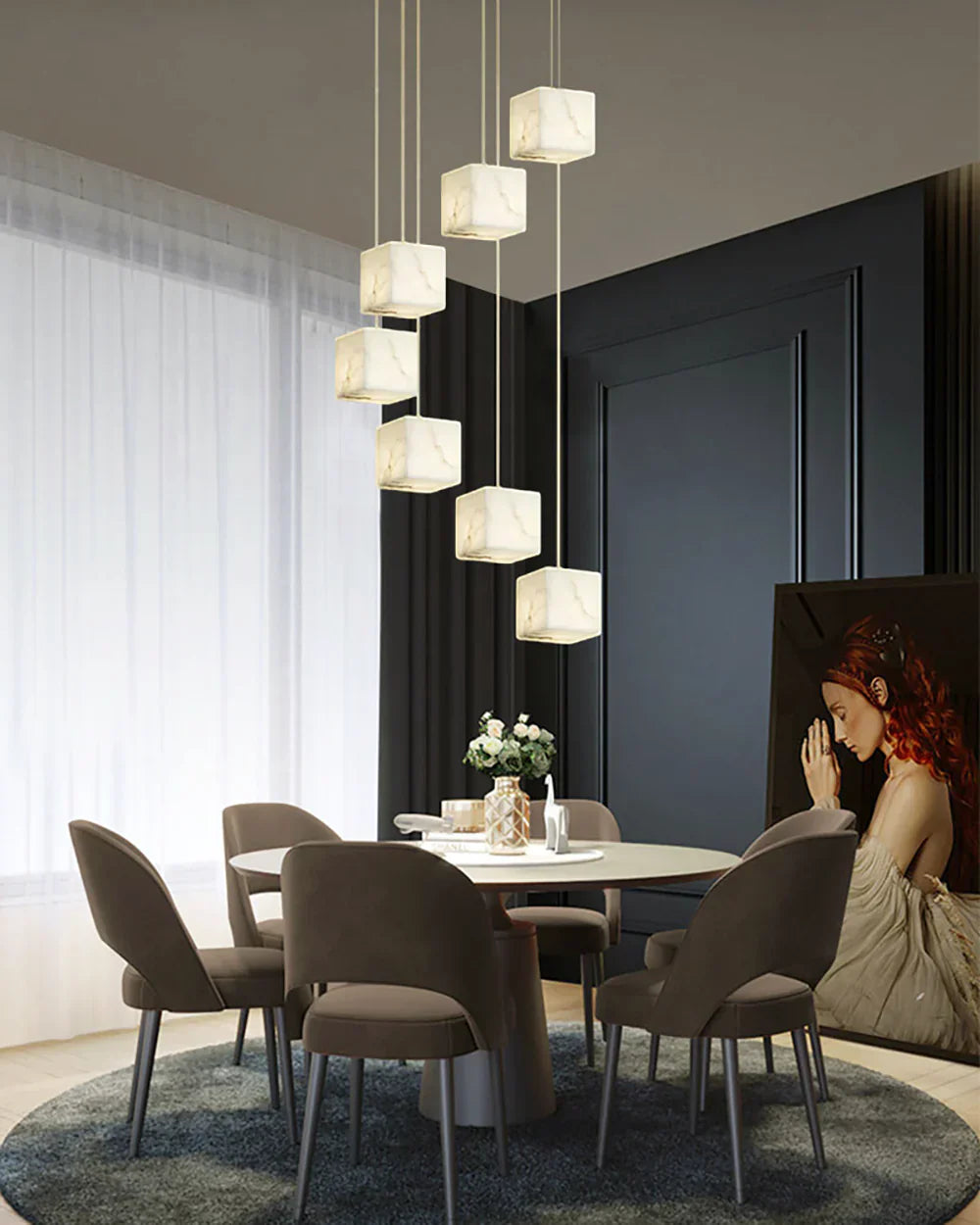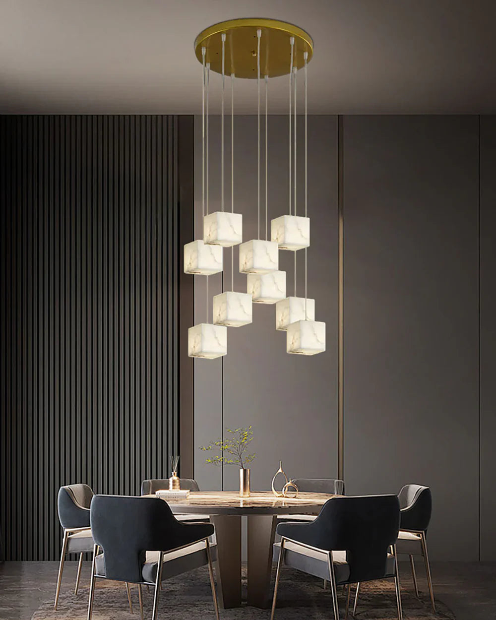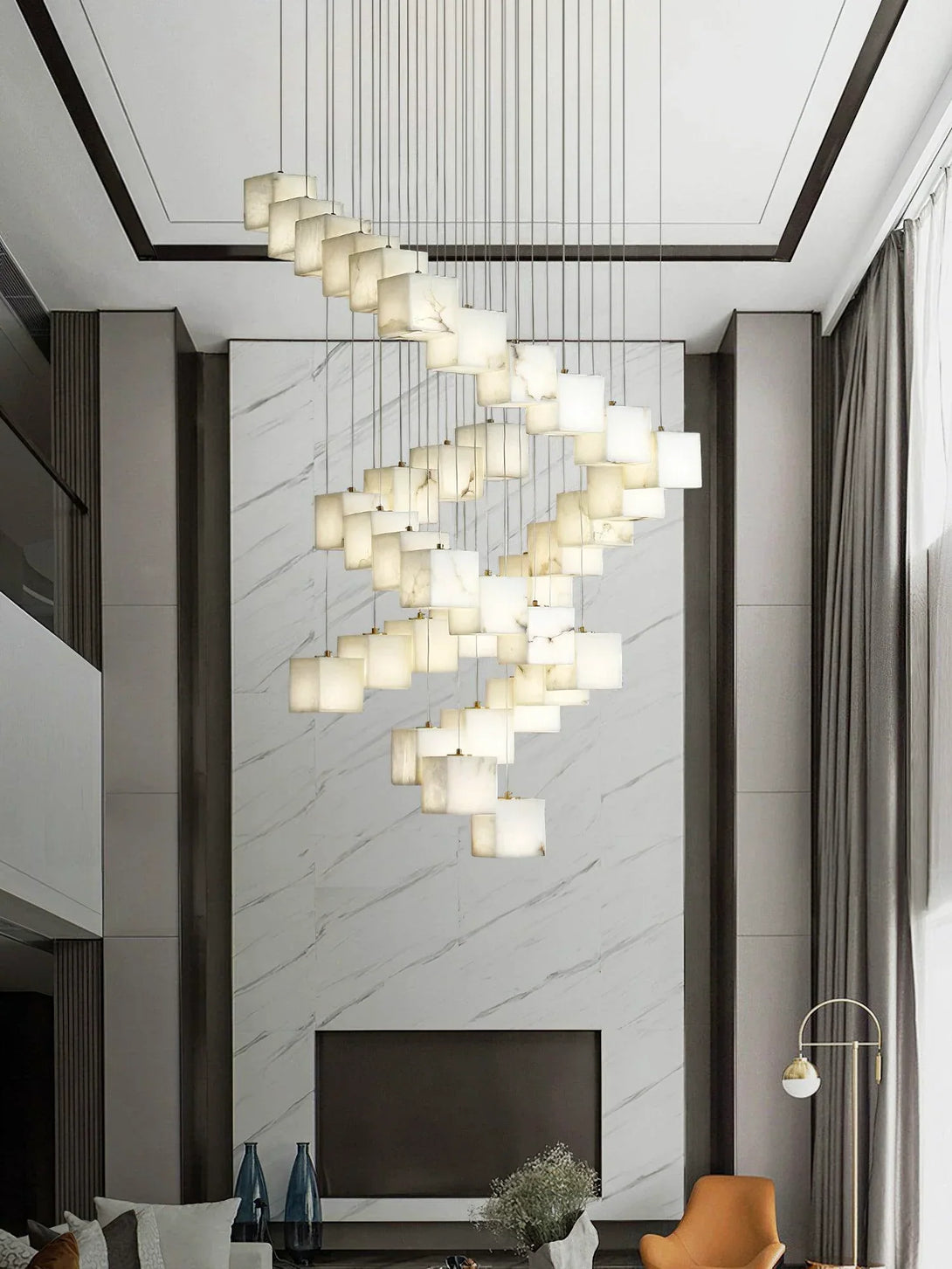 Elevate your home decor with the exquisite and elegant Alabaster Cube Box Chandelier. Its plaster material construction and intricate design of multiple boxes create a unique play of light and shadow. The modern and artistic appearance paired with exceptional lighting effects make this pendant light a must-have for any indoor space.