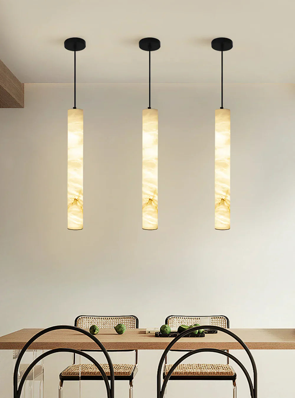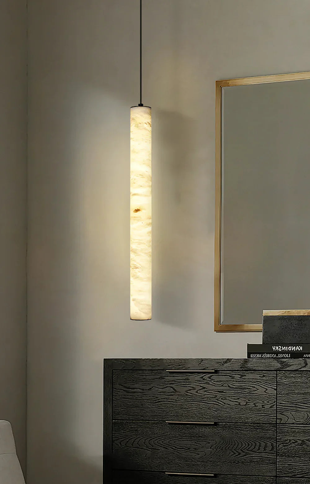 Add a touch of elegance to your space with the Alabaster Cylindrical Pendant Light. This stunning piece combines a sense of luxury for a modern yet classic look. Its sophisticated white design and LED light bring a stylish appeal to any room, making it a must-have in your home.