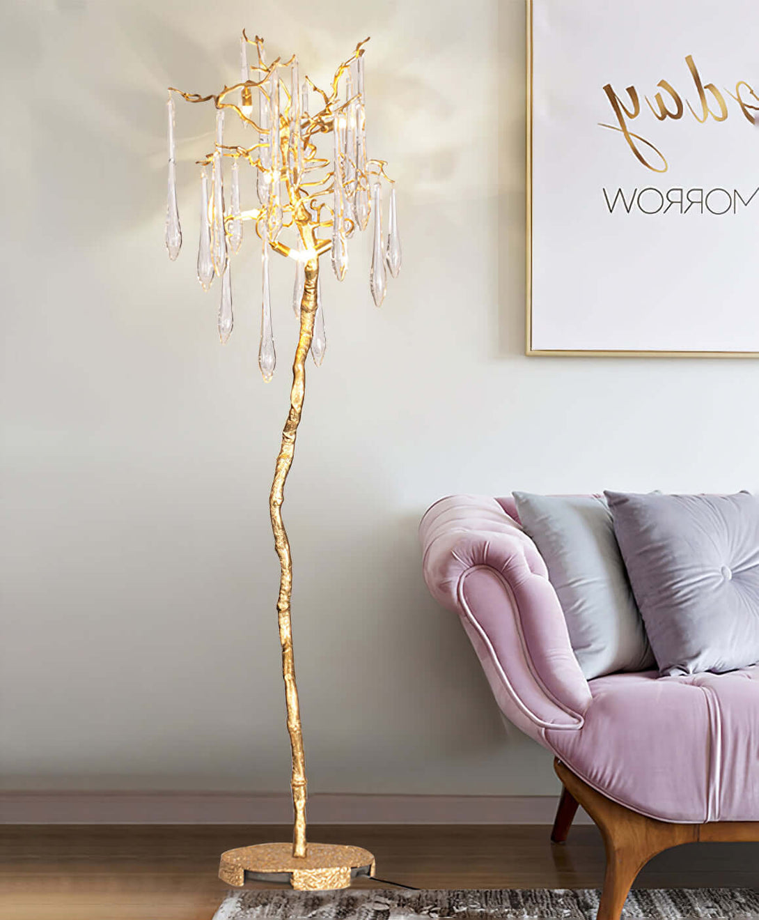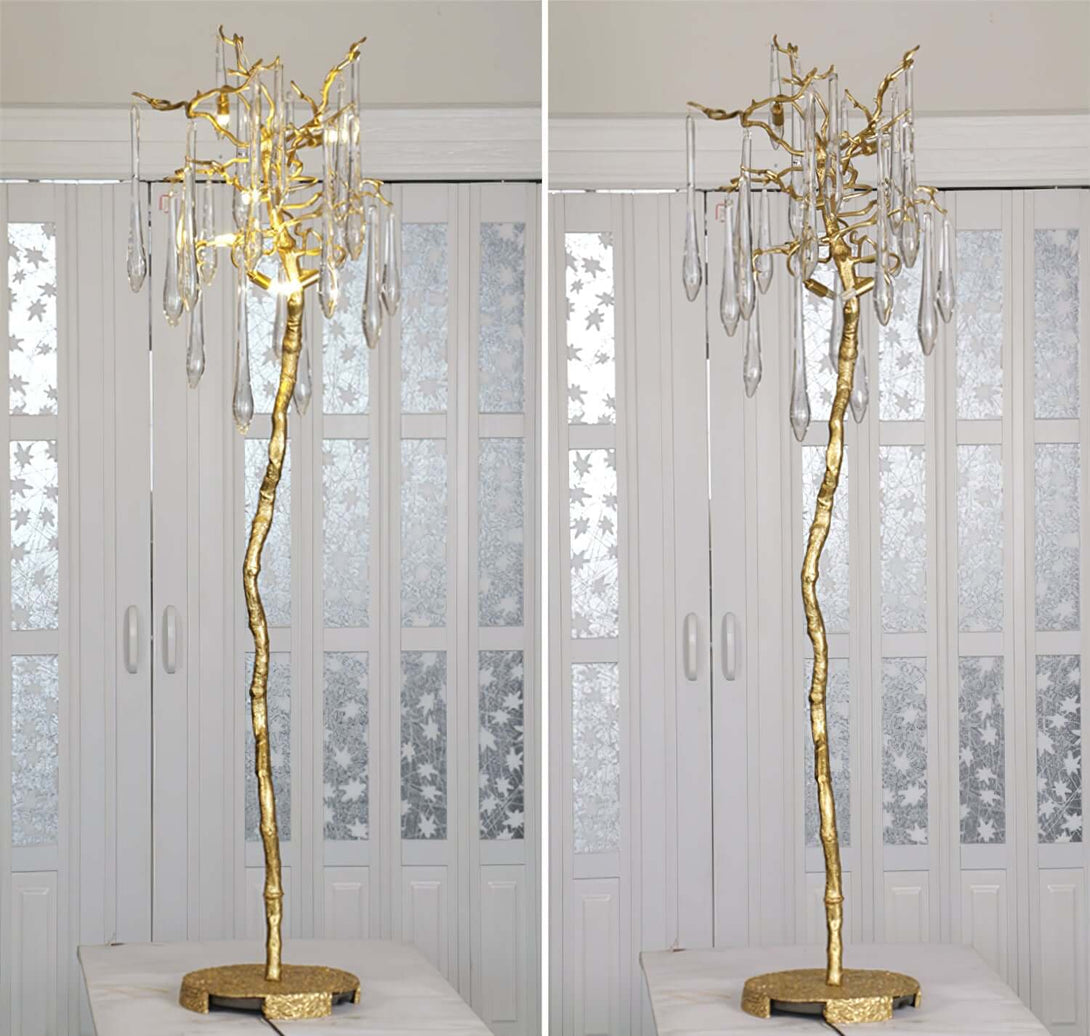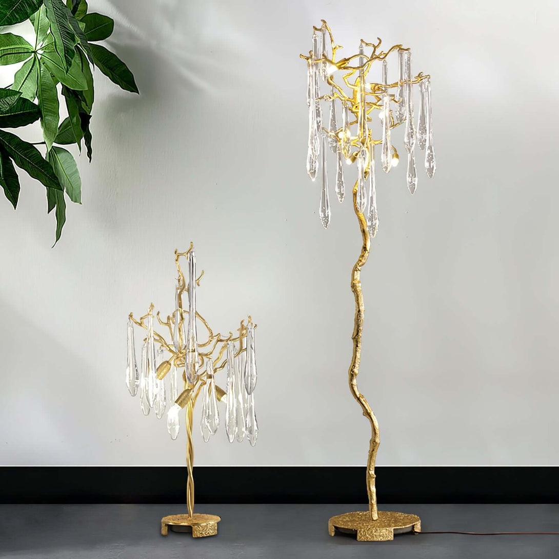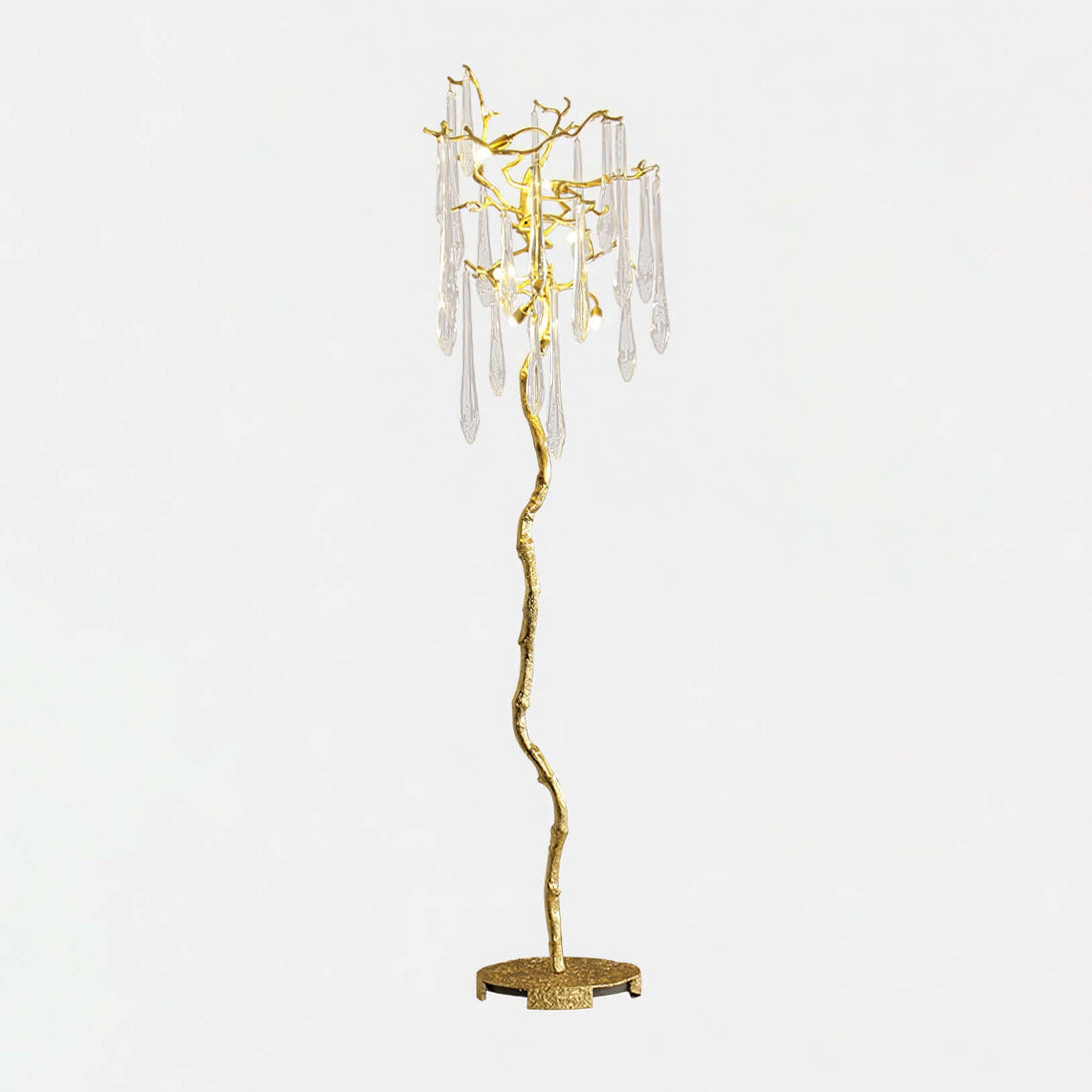 Aqua Babylonica Floor Lamp Transform your space. Inspired by Winter water drops, its delicate glass pieces and entangled brass structure bring a touch of nature's elegance to any room. With a variety of color and design options, this lamp is an exquisite addition to any concept.