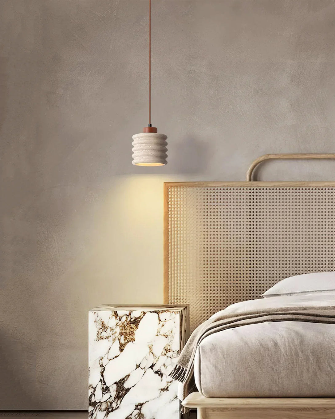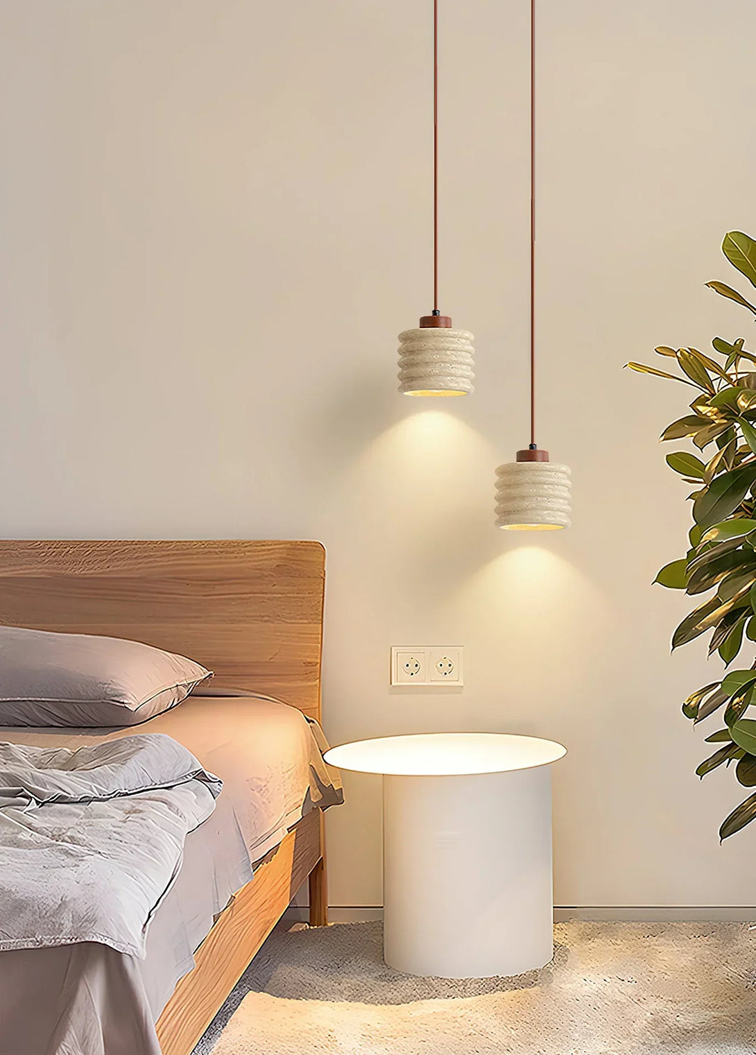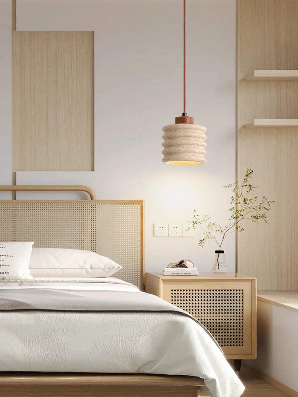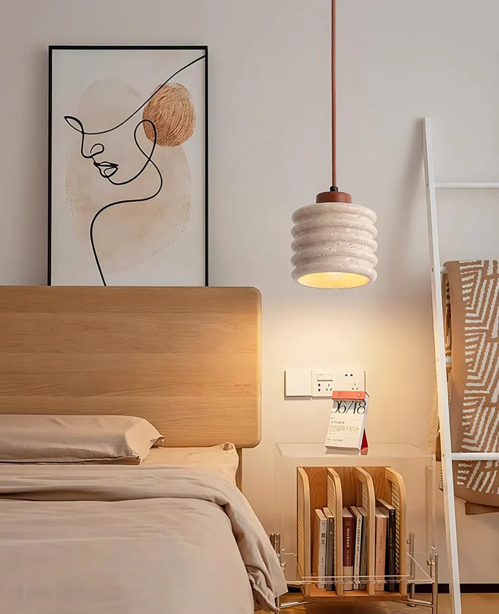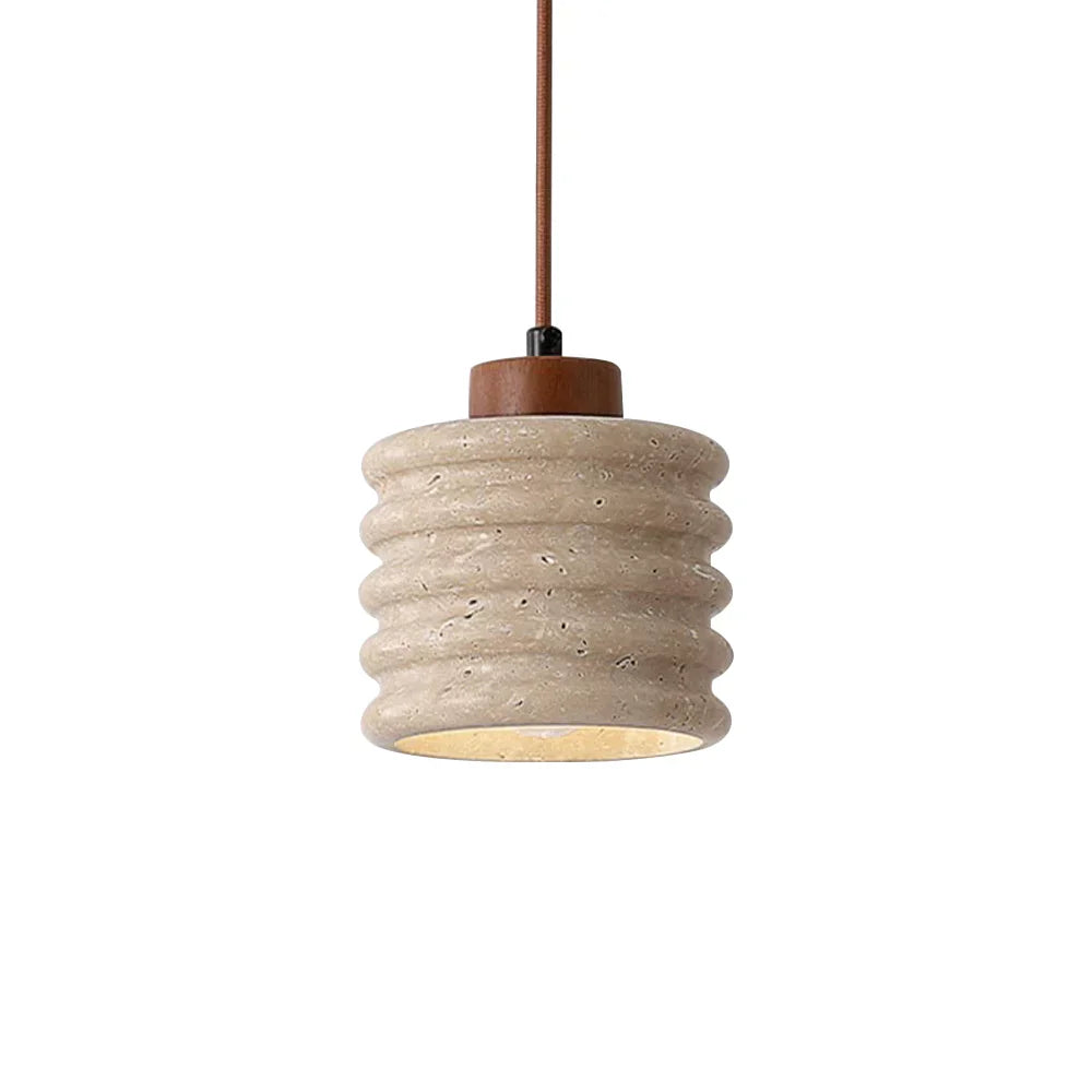 Indulge in the exquisite sophistication of the Candeeiro Column Travertine Pendant Lamp. The ribbed stone shade, paired with a wooden accent, effortlessly marries nature with contemporary style. The beautiful combination of materials and sleek design will captivate and elevate any modern space with its alluring charm and warm glow.