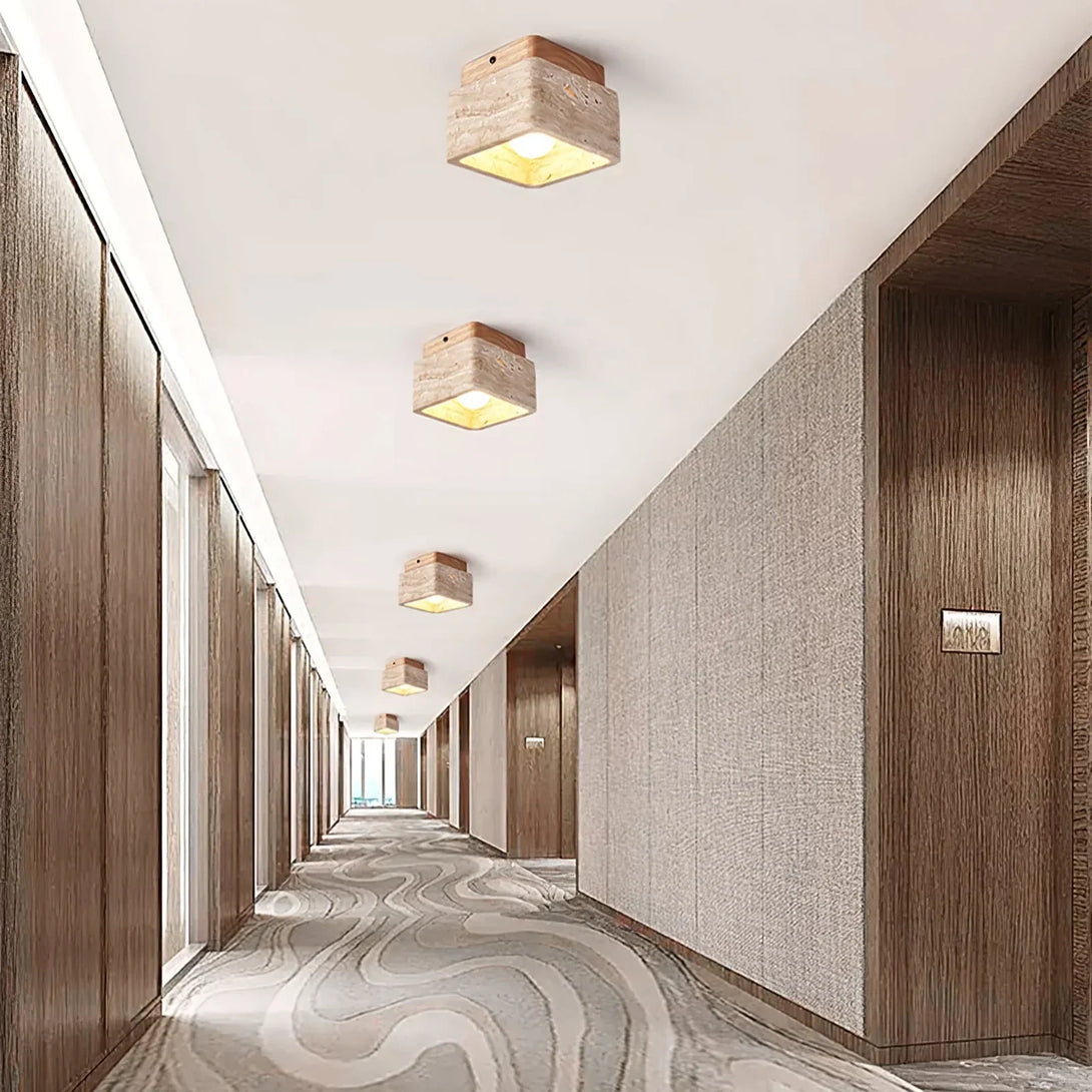 Cube Terra Block Travertine Ceiling Light