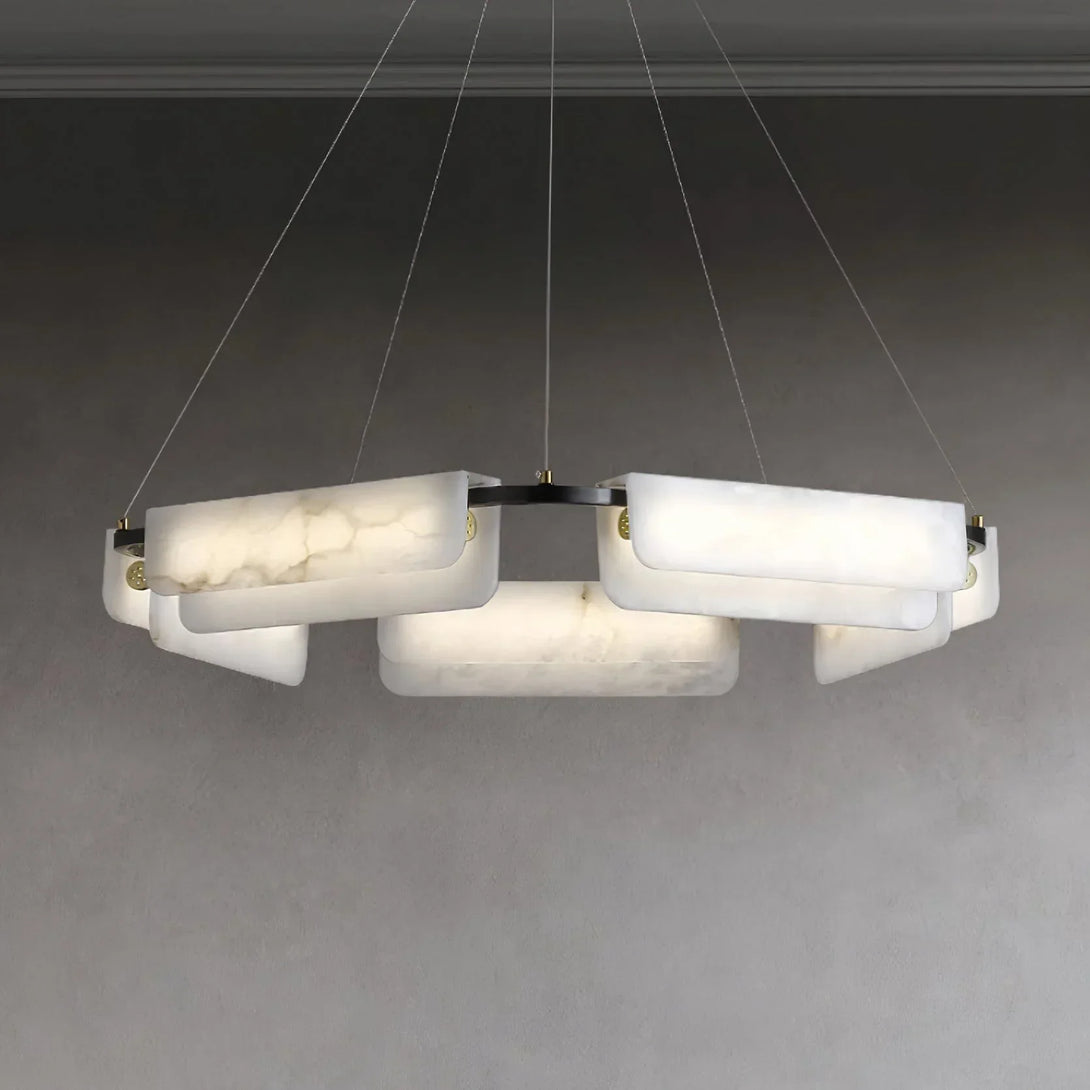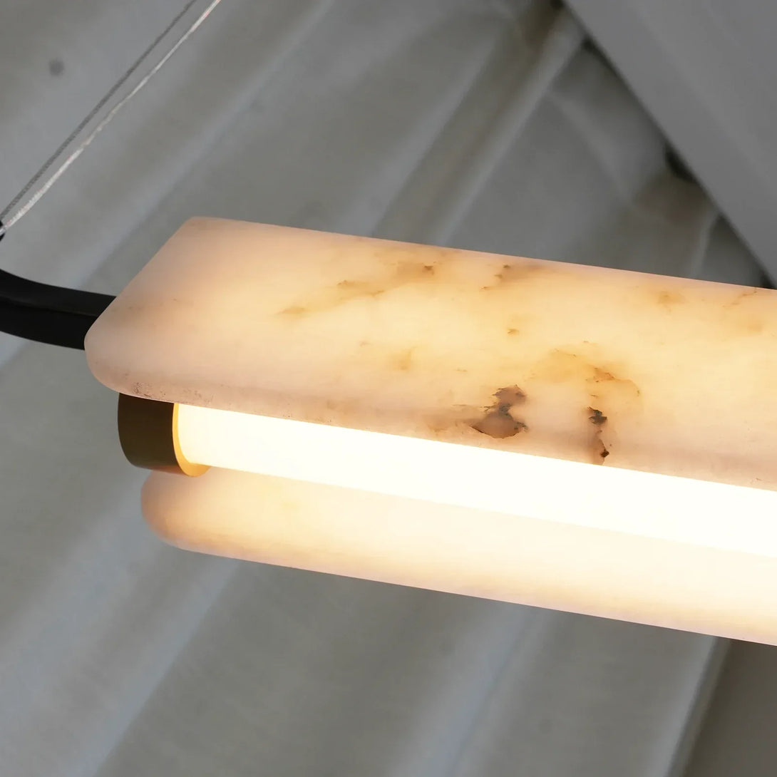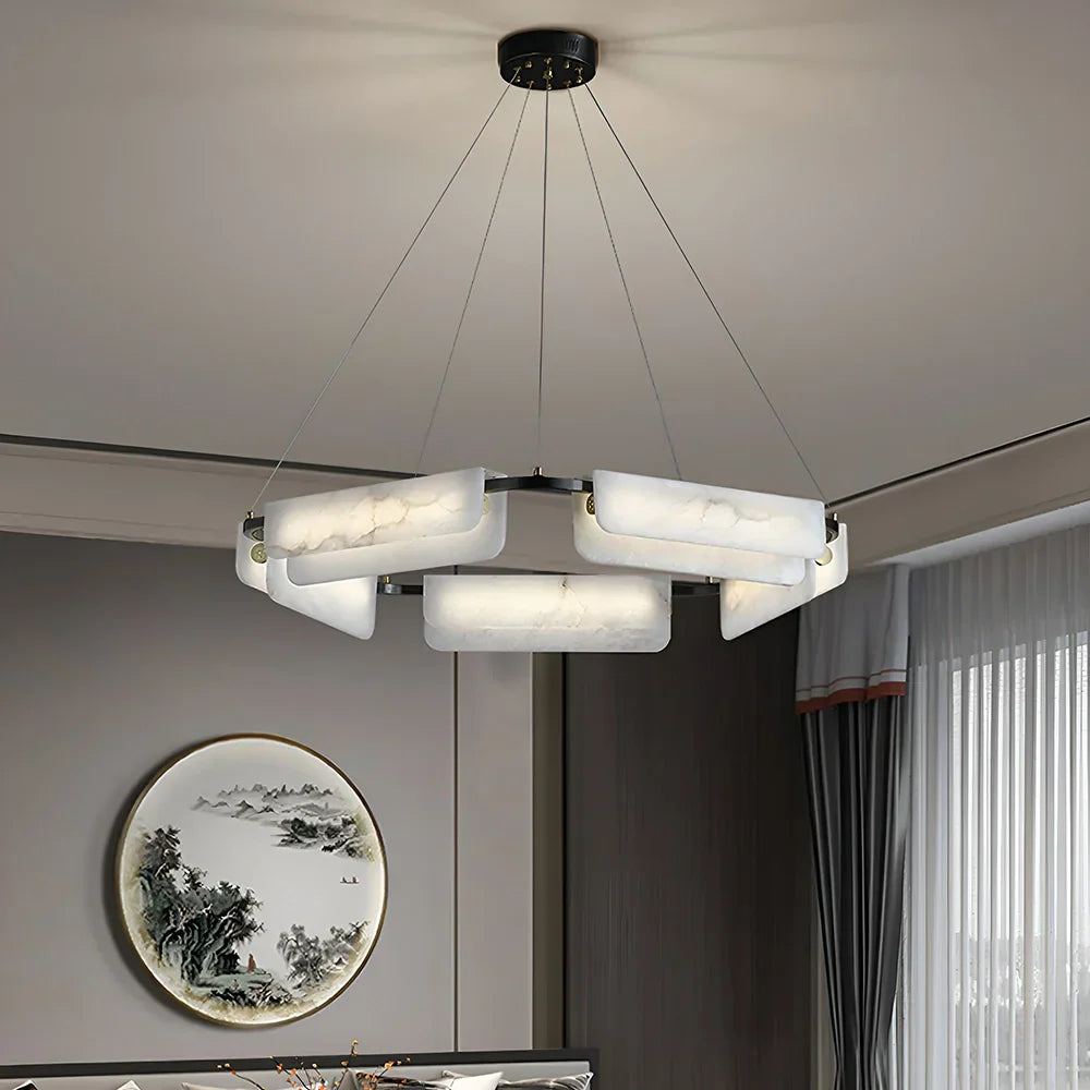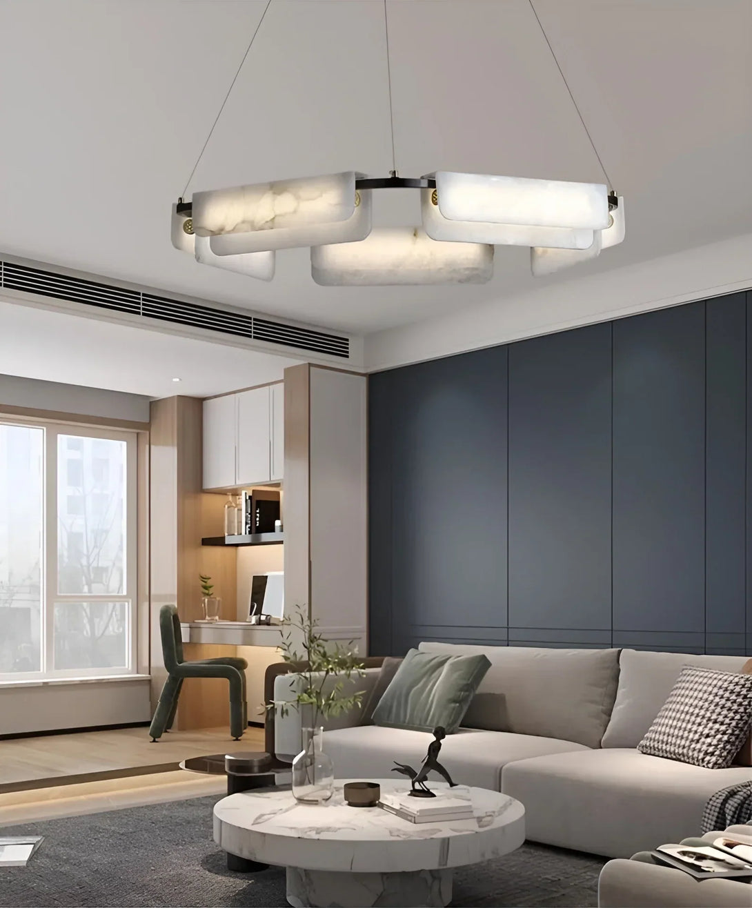 Delia Rectangular Alabaster Chandelier perfectly combine modern aesthetics with timeless elegance. The eye-catching black and gold color scheme is designed to attract attention and add a touch of elegance to any environment. The chandelier's sleek, minimalist silhouette blends effortlessly into modern dcor, while its refined materials give it an aura of grandeur.