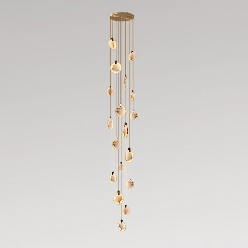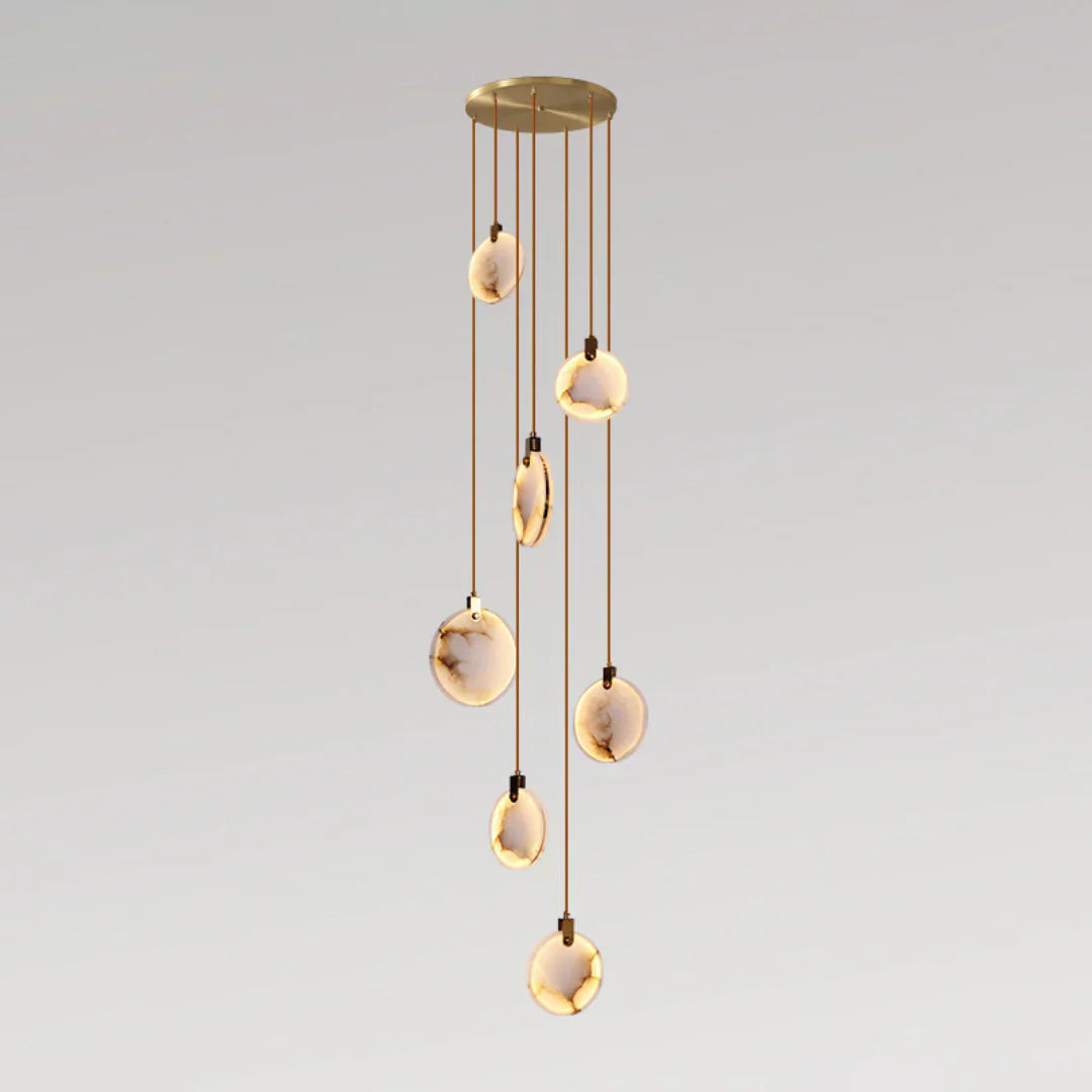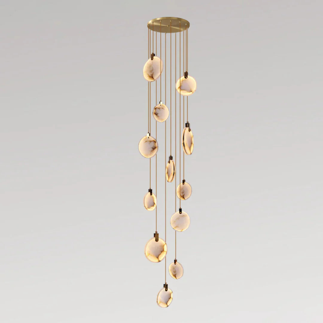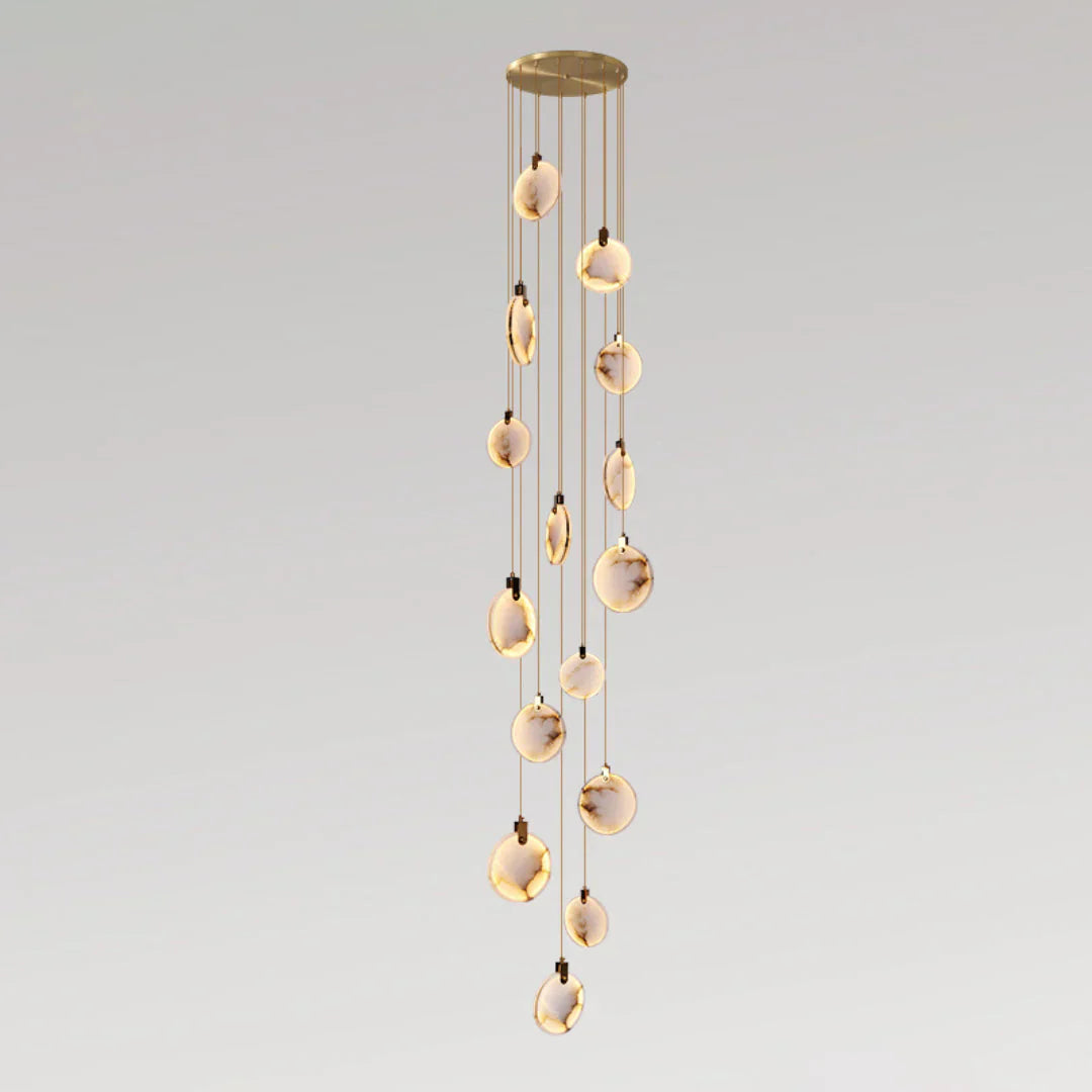 Elevate your space with the contemporary elegance of our Disc Harvest Alabaster Chandelier. Featuring sleek antique brass steel tubing and two luxurious alabaster discs, this chandelier adds a touch of luxury to any room. Create a truly dazzling effect by adding multiple to your space.