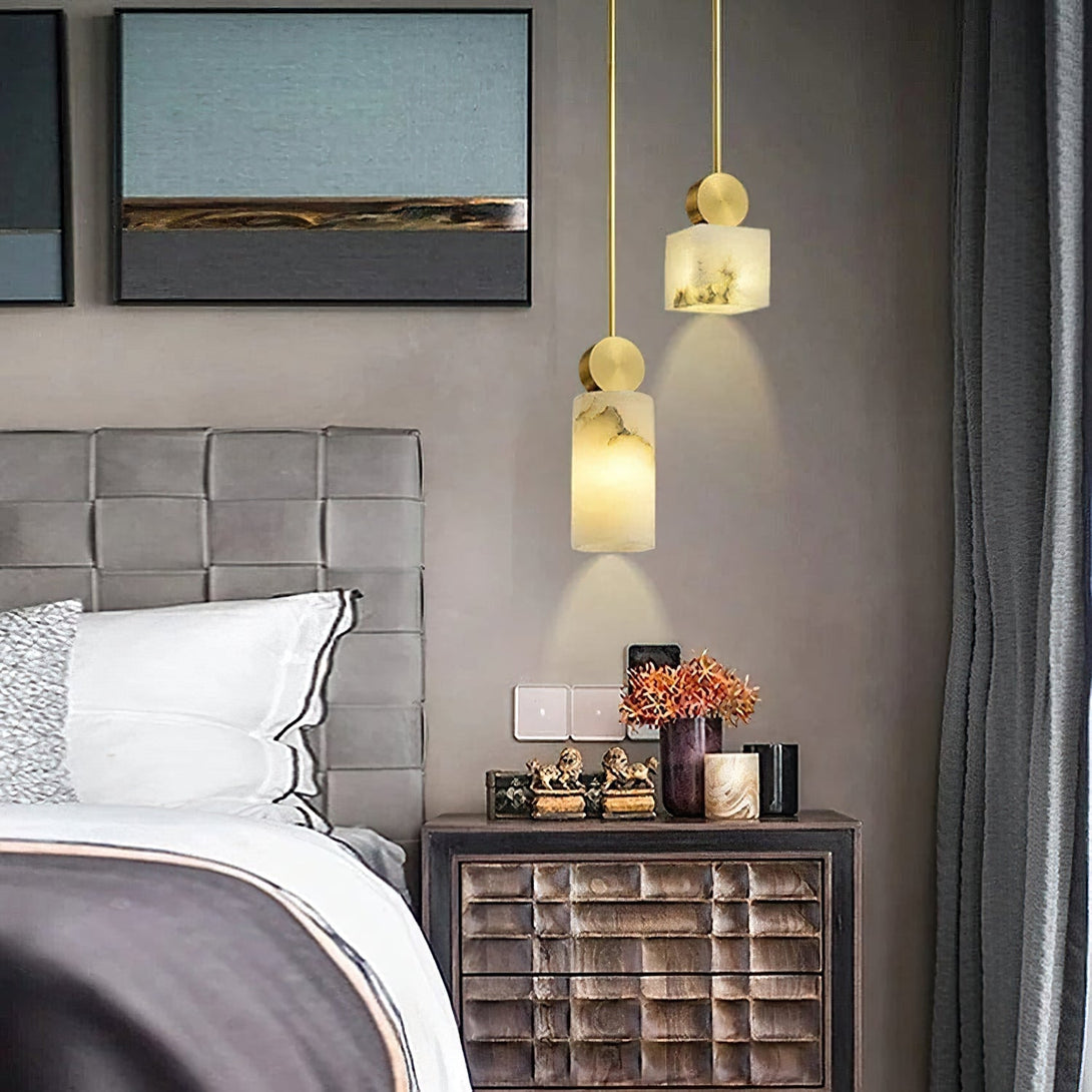 Etruscan Pendant Light Create a serene and balanced ambiance by installing the Etruscan Pendant over your dining table or nightstand. Featuring a brass finish and alabaster lampshade, this exquisite pendant adds a romantic flair to your d¨¦cor. For a striking visual, mix and match with square pendants and cluster them above your coffee table.