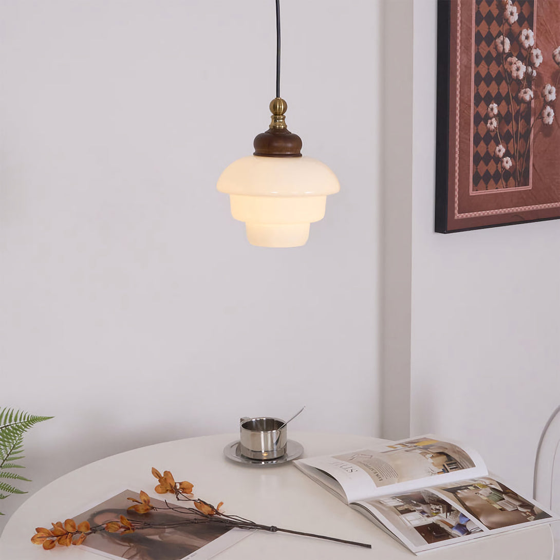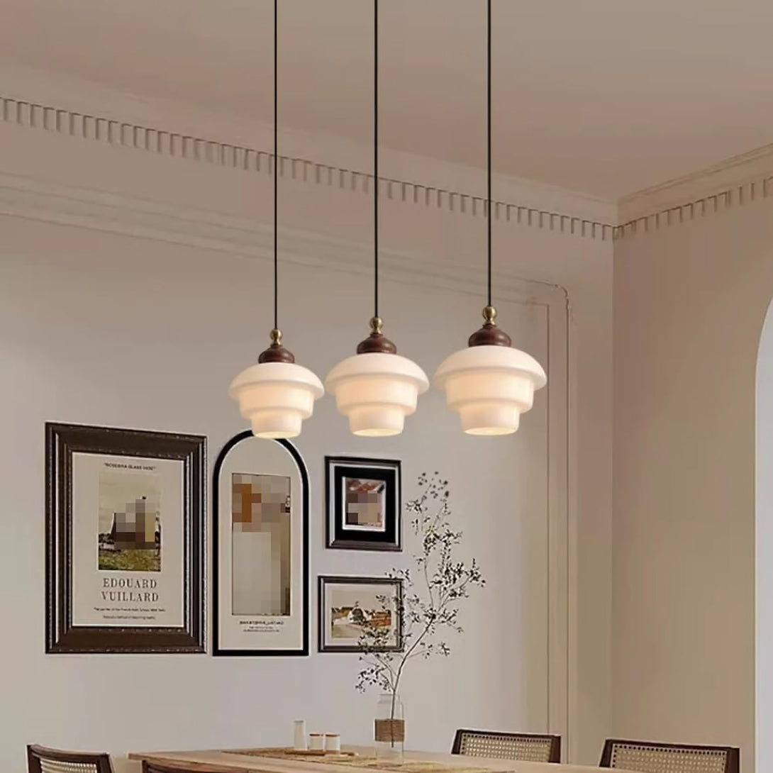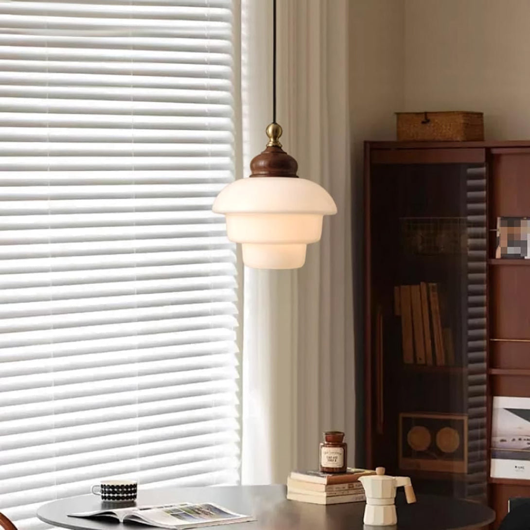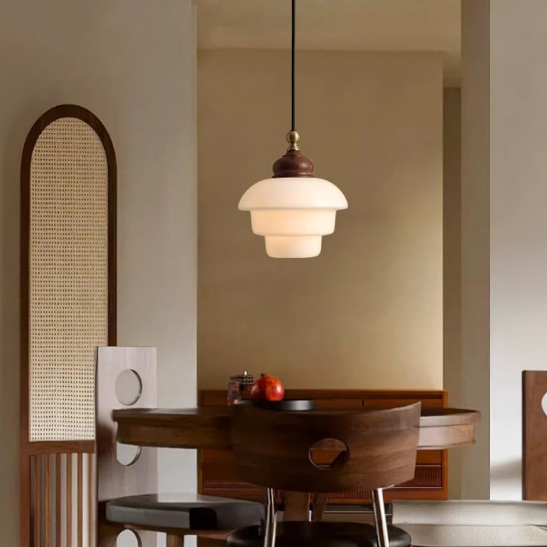 The French Retro Pinecones Glass Pendant Light from Korewolamp captures the elegance of nature through a refined vintage lens. Inspired by the form of a pine cone, its layered white glass shade diffuses a soft, ambient glow, creating a warm and inviting atmosphere. The wood and brass accents at the top lend a touch of natural texture and retro sophistication, balancing organic beauty with timeless design. Perfect for dining areas, living rooms, or cozy reading corners, this pendant light adds character and charm to any space, making it an ideal choice for nature-inspired interiors.