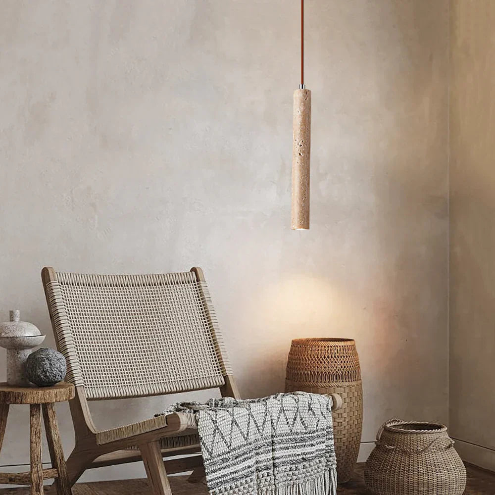 Reimagine your living space with our Long Cylinder Travertine Pendant Lamp! This extraordinary lighting fixture showcases the natural beauty of yellow travertine paired with premium metal elements, instantly elevating any interior. The elongated cylindrical design creates a mesmerizing ambiance with its soft, inviting illumination that transforms ordinary rooms into sophisticated sanctuaries.