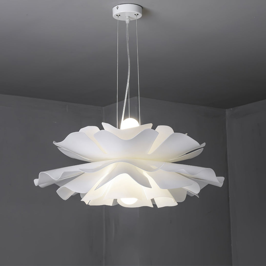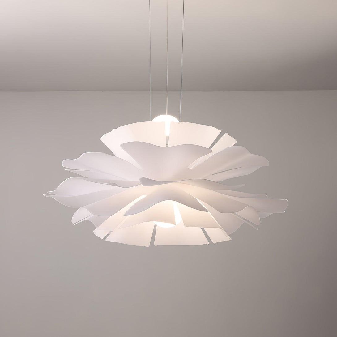 The Lotus Flower Pendant Lamp will instantly draw your attention with its lotus-like shape and captivating design. Its warm white finish provides a calming atmosphere, like a cloud floating in the sky. Perfect for any modern living space.