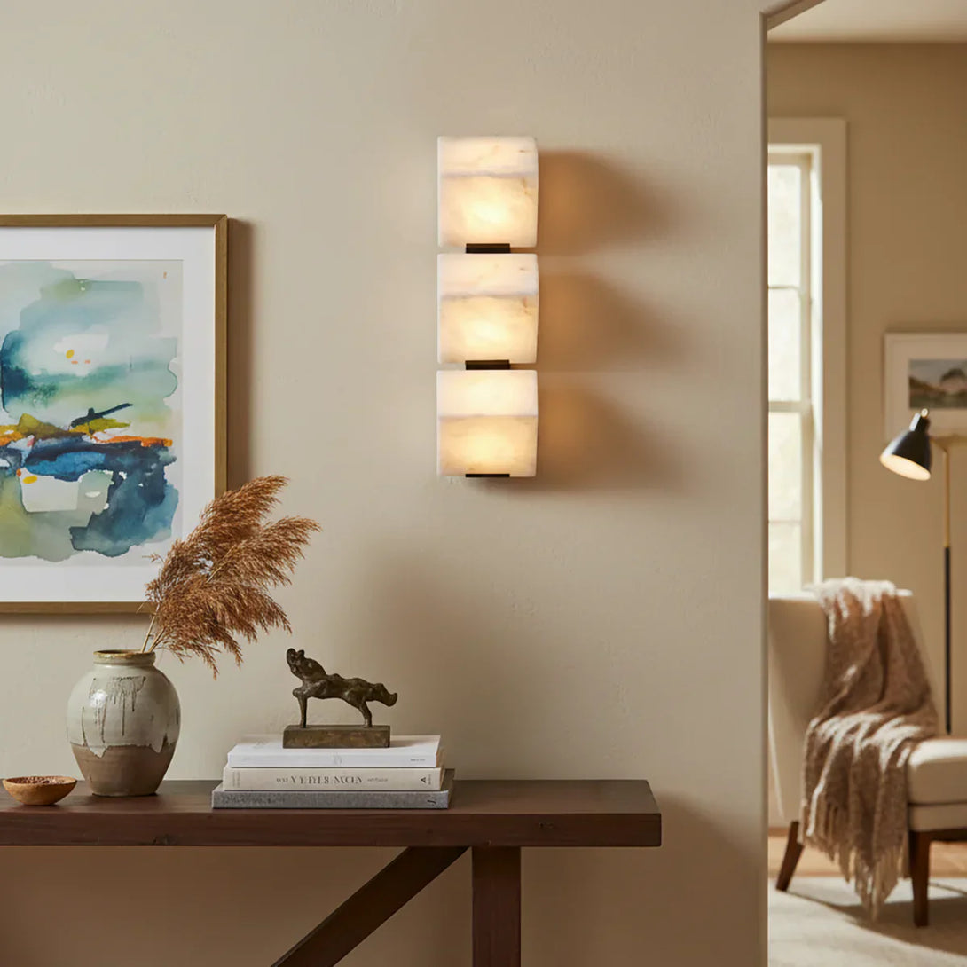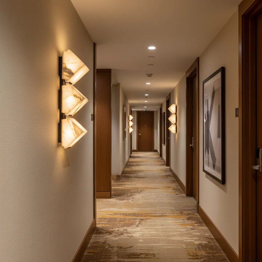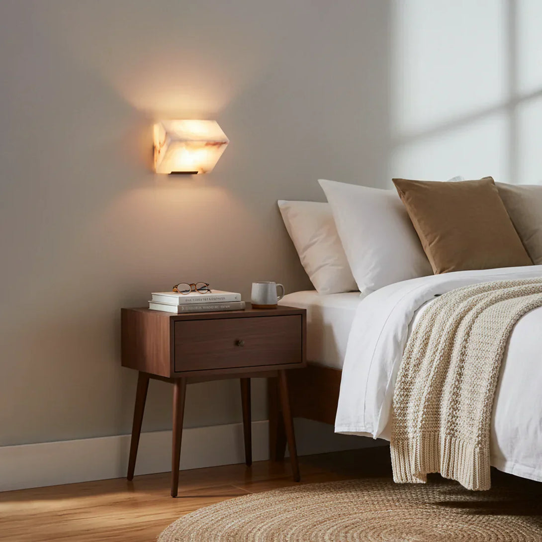 Alabaster's unique translucency evenly and softly diffuses light, effectively reducing glare and creating a warm and cozy atmosphere. Perfect for bedrooms, living rooms, or hotel hallways, this wall lamp blends seamlessly into any style, enhancing the overall aesthetic of any space, from modern minimalist to light luxury to classic classics.