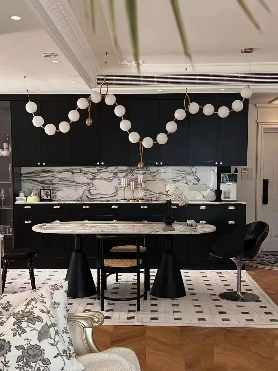 This necklace-style LED chandelier perfectly blends jewel-like elegance with practical lighting. Stringed together like sparkling pearls, it effortlessly complements various interior design styles, ensuring a perfect fit for your space. It exudes artistic refinement and elegance, creating a unique light sculpture that adds a touch of sophistication and warmth to any room.