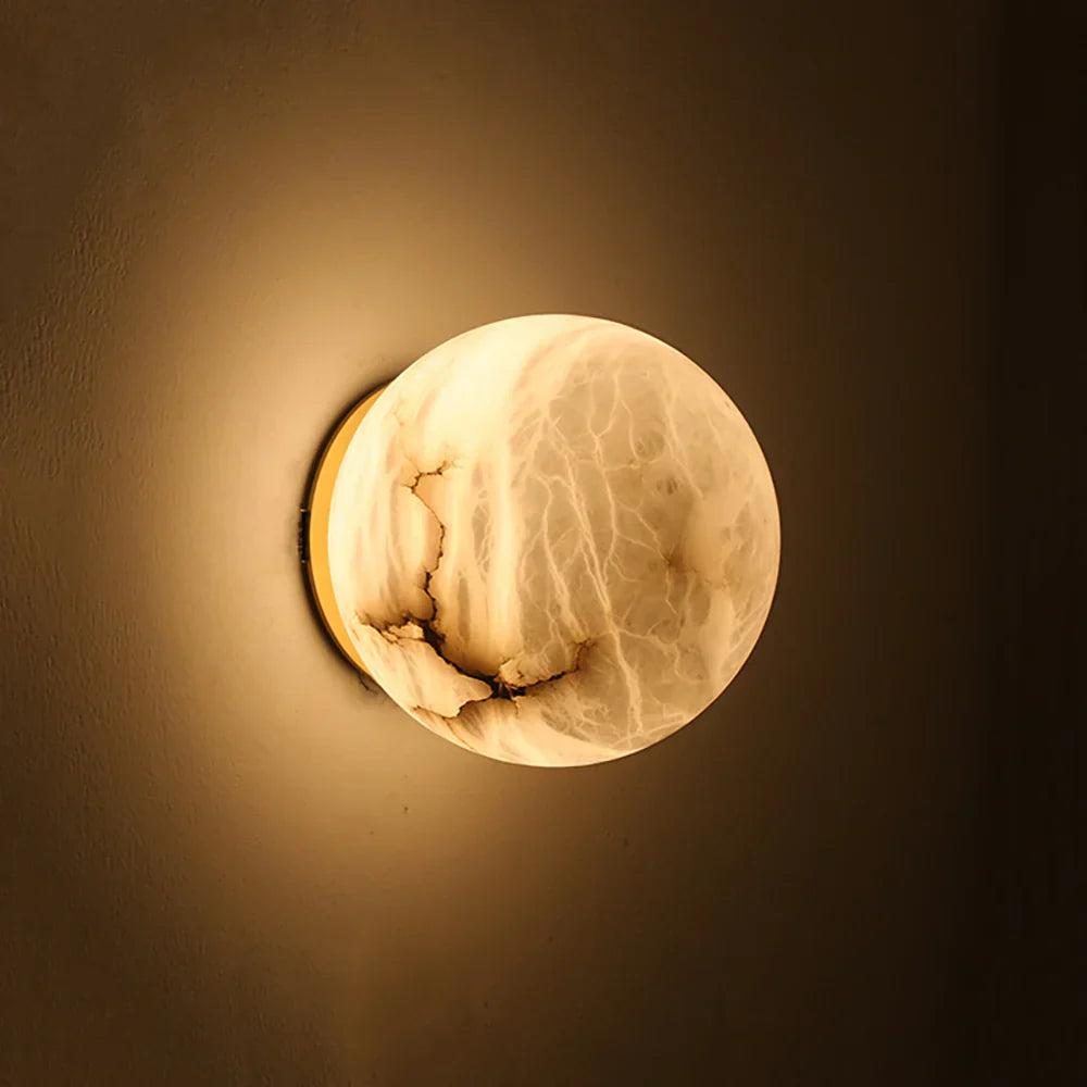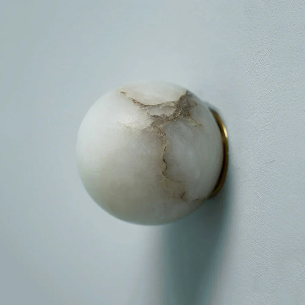 Illuminate your space with the elegant Alabaster Mini Orb Wall Lamp. Featuring a beautiful snowflake gypsum globe, it creates a timeless and refined ambiance. With discreet hardware, it seamlessly blends into any decor, adding a touch of mystery to your space.