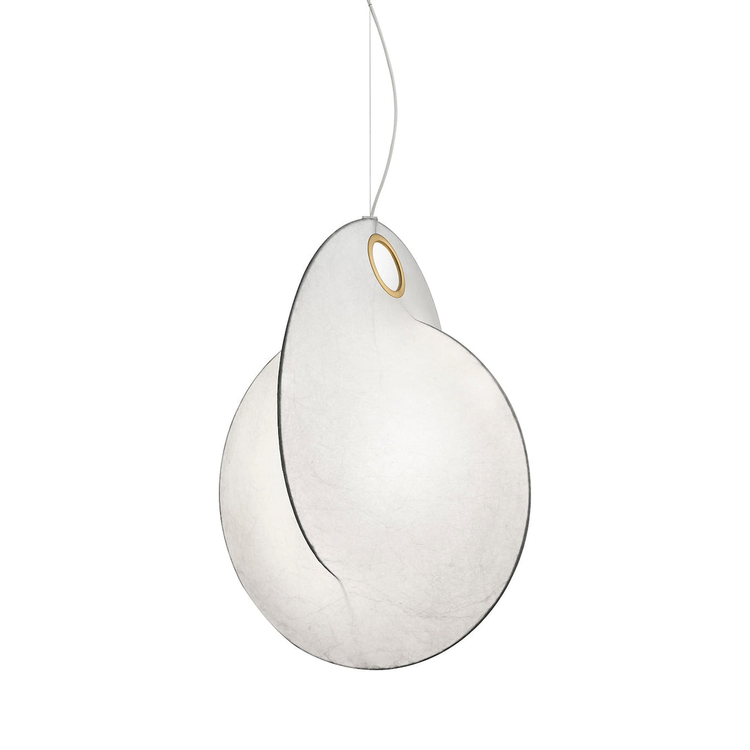 Overlap is a contemporary pendant light that is made from steel and cocoon, while its internal structure comprises of white powder painted steel. As the name suggests, modern pendant lamp that features two interlocking rings which intersect at right angles.