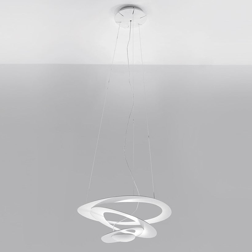 Pirce pendant lamp is a suspension lamp in painted aluminium. Opening out of a slim disk are fluttering spirals, which fall gently downwards, creating magical effects of form and light.