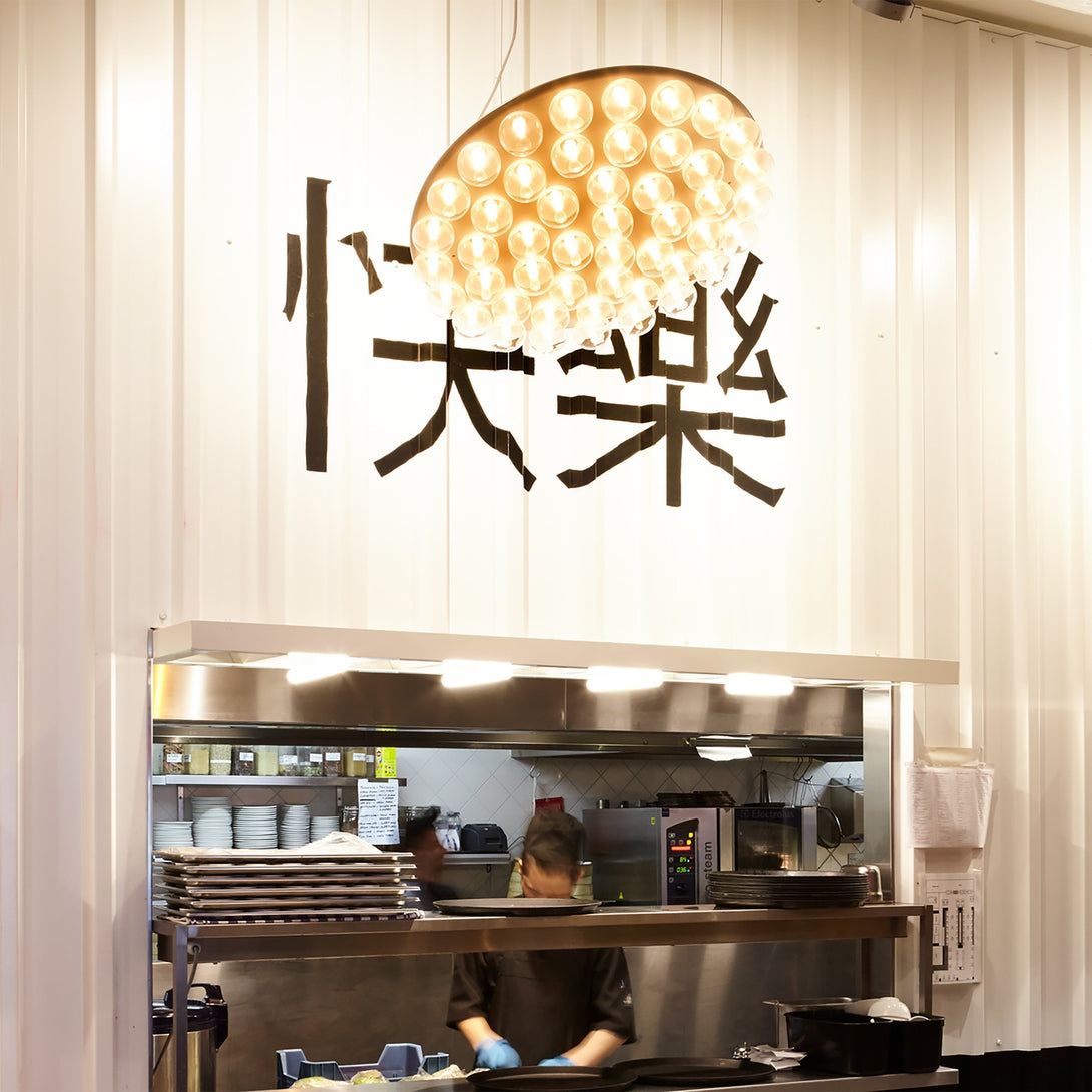 We have round lights, we have straight lights. We have them with lights on one side, we have them with lights on two sides. You can hang them high, low, horizontally, vertically, or even hang them in an angle. Put them on the floor, hang them on your wall, or down from the ceiling.