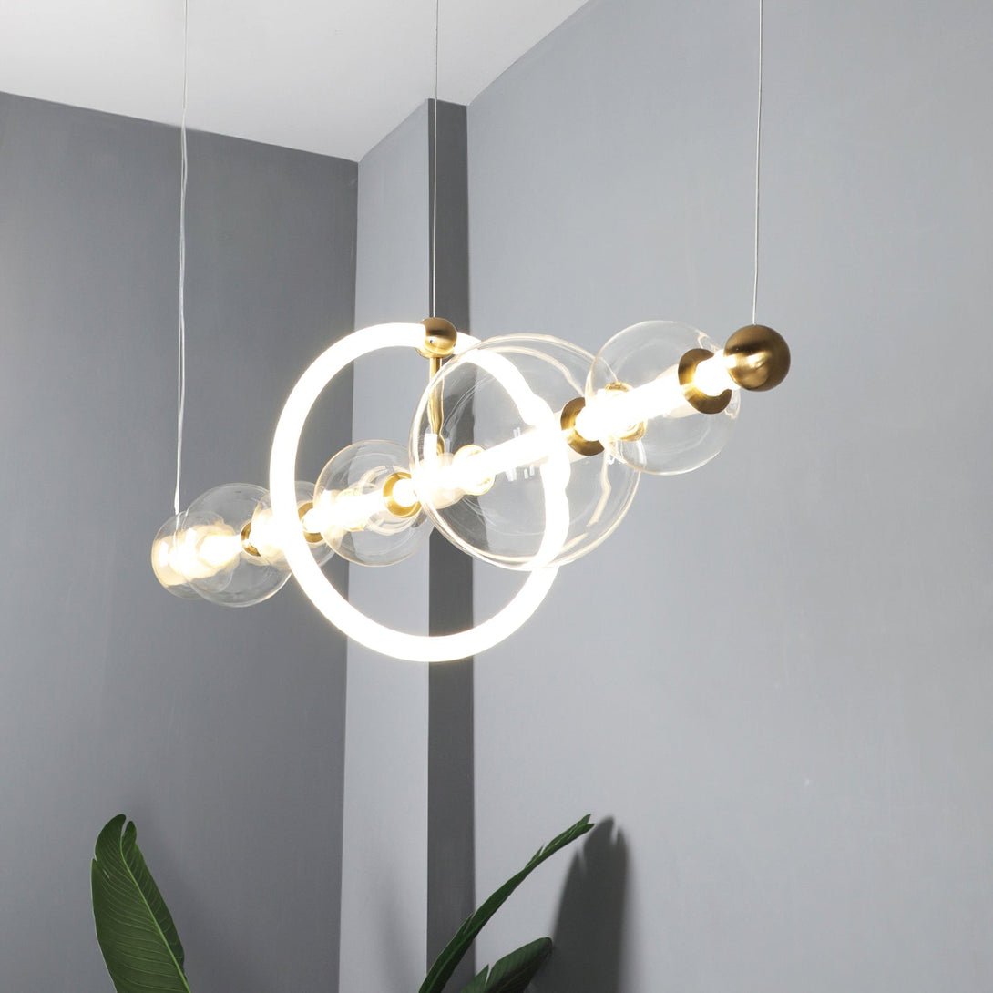 Puppet ring is made of mouth-blown glass and a level frame, donating a contemporary elegance. The frame comes in white acrylic, and the glass shades in clear.
