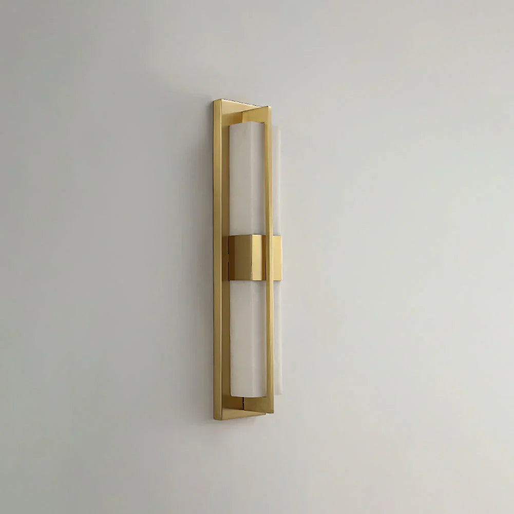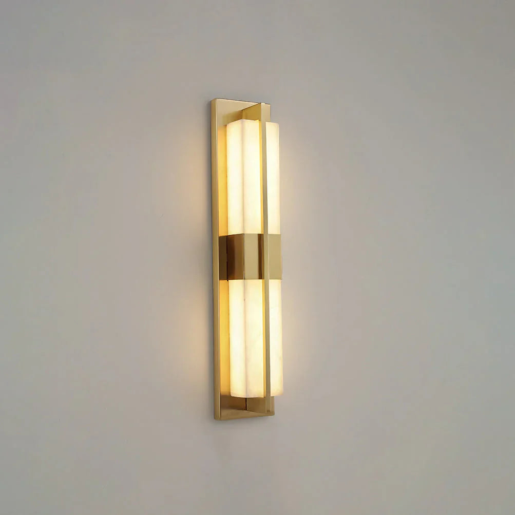 Enhance your interior with the Rectangular Alabaster Modern Brass Wall Sconce - a perfect blend of natural beauty and timeless sophistication. The sleek alabaster shade diffuses warm light, while the brass accents add a touch of luxury. Ideal for any room, this sconce provides both functional lighting and stylish design.