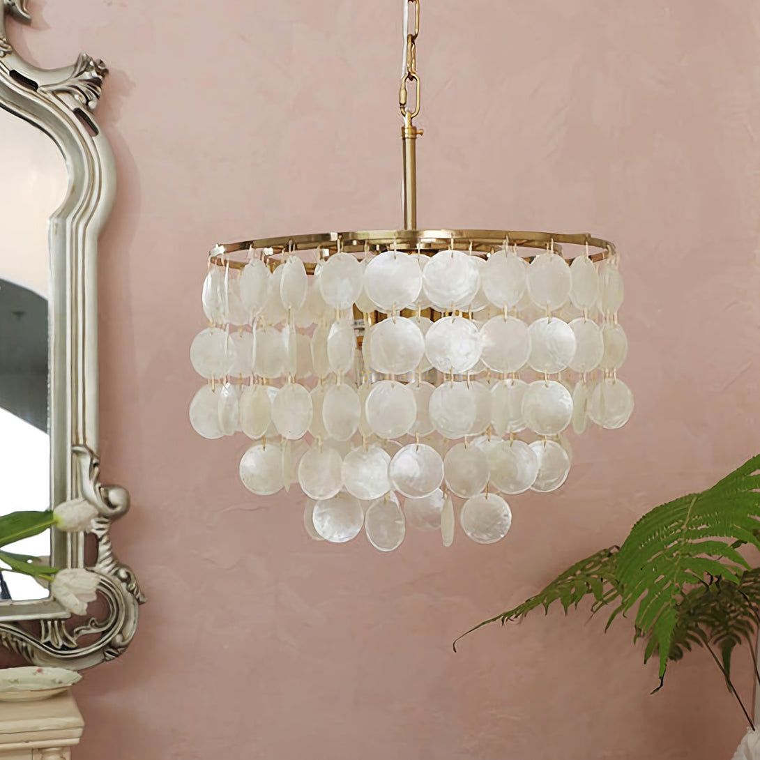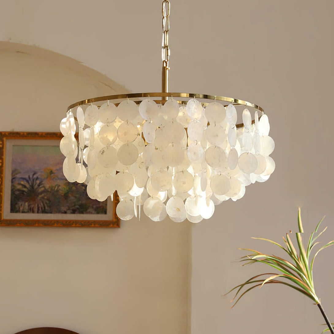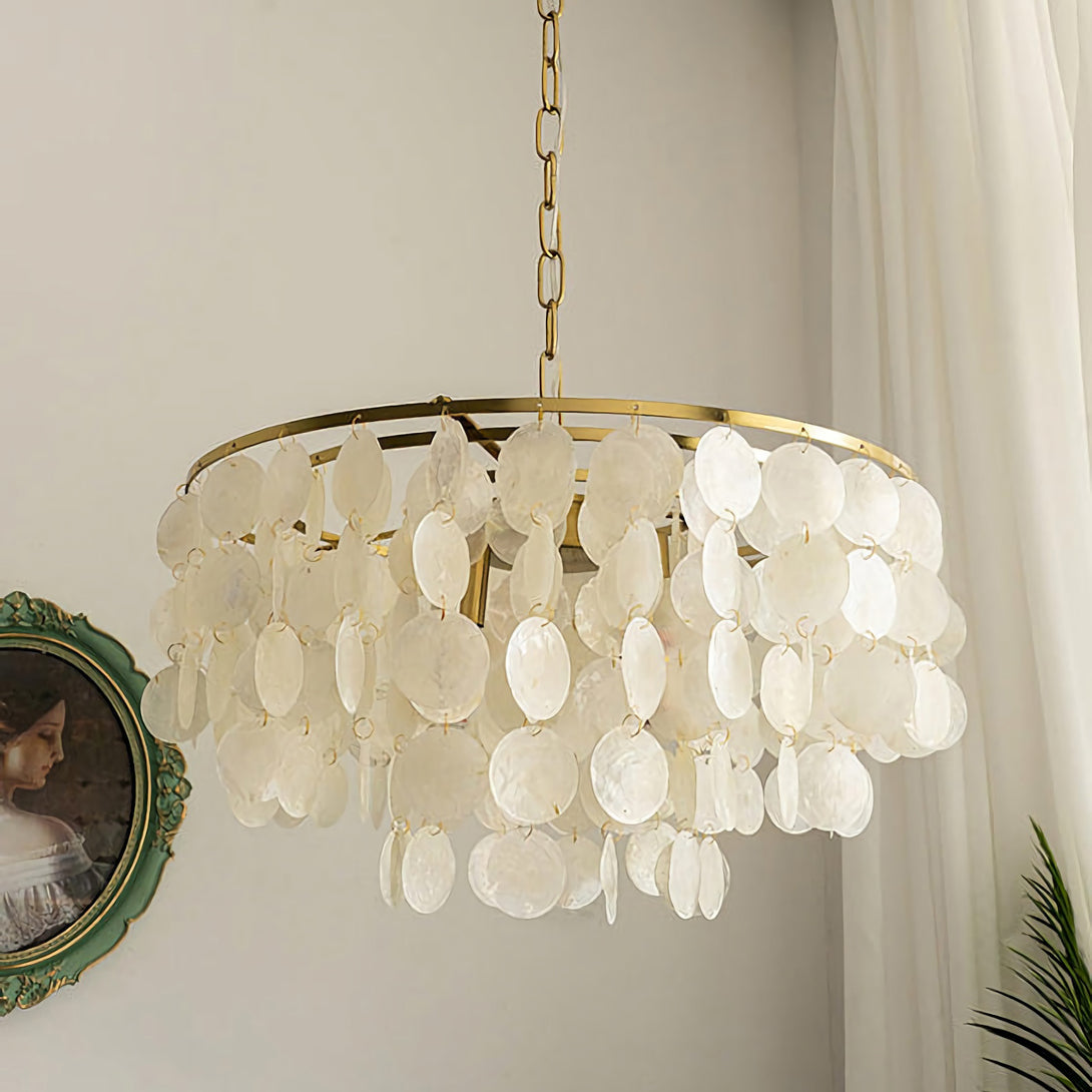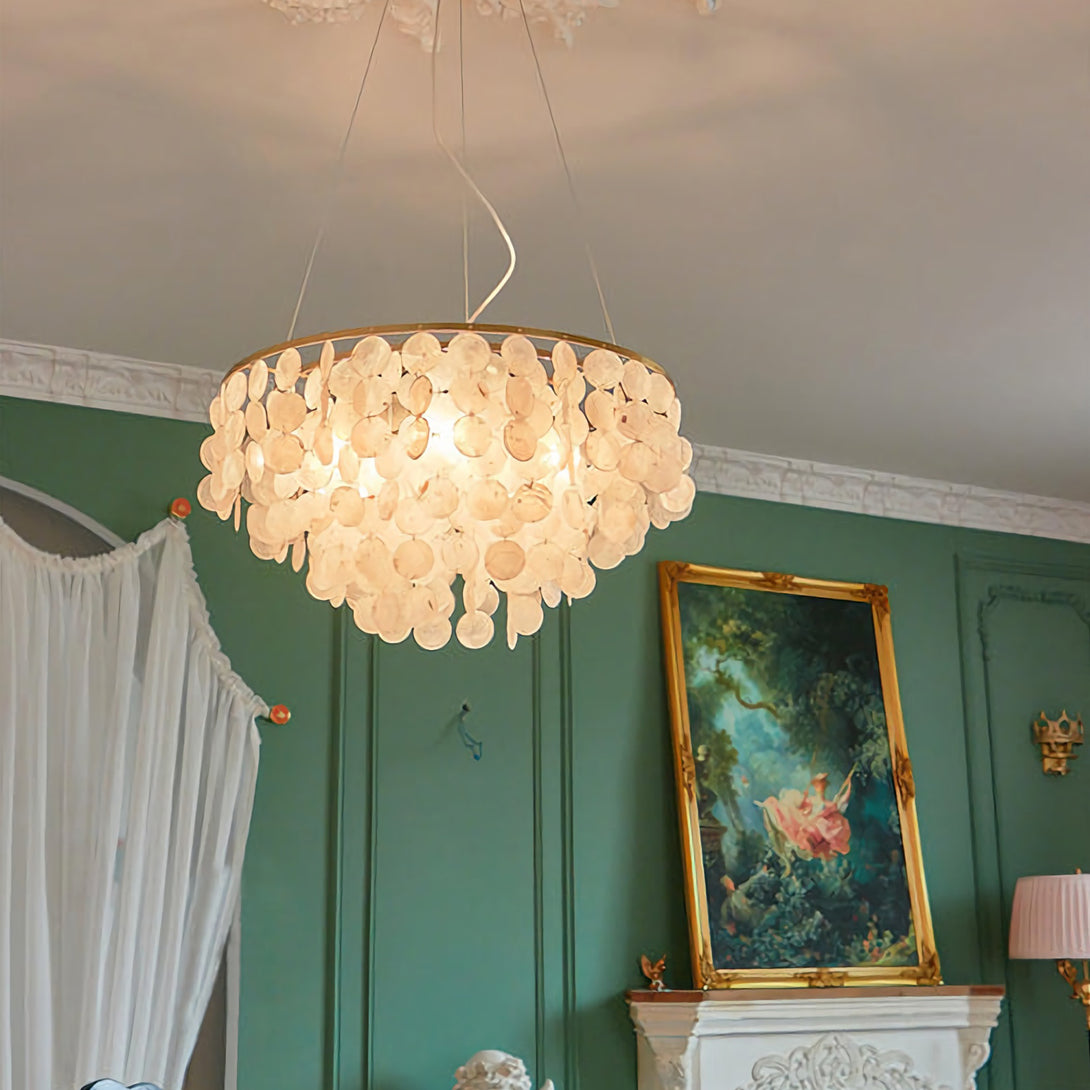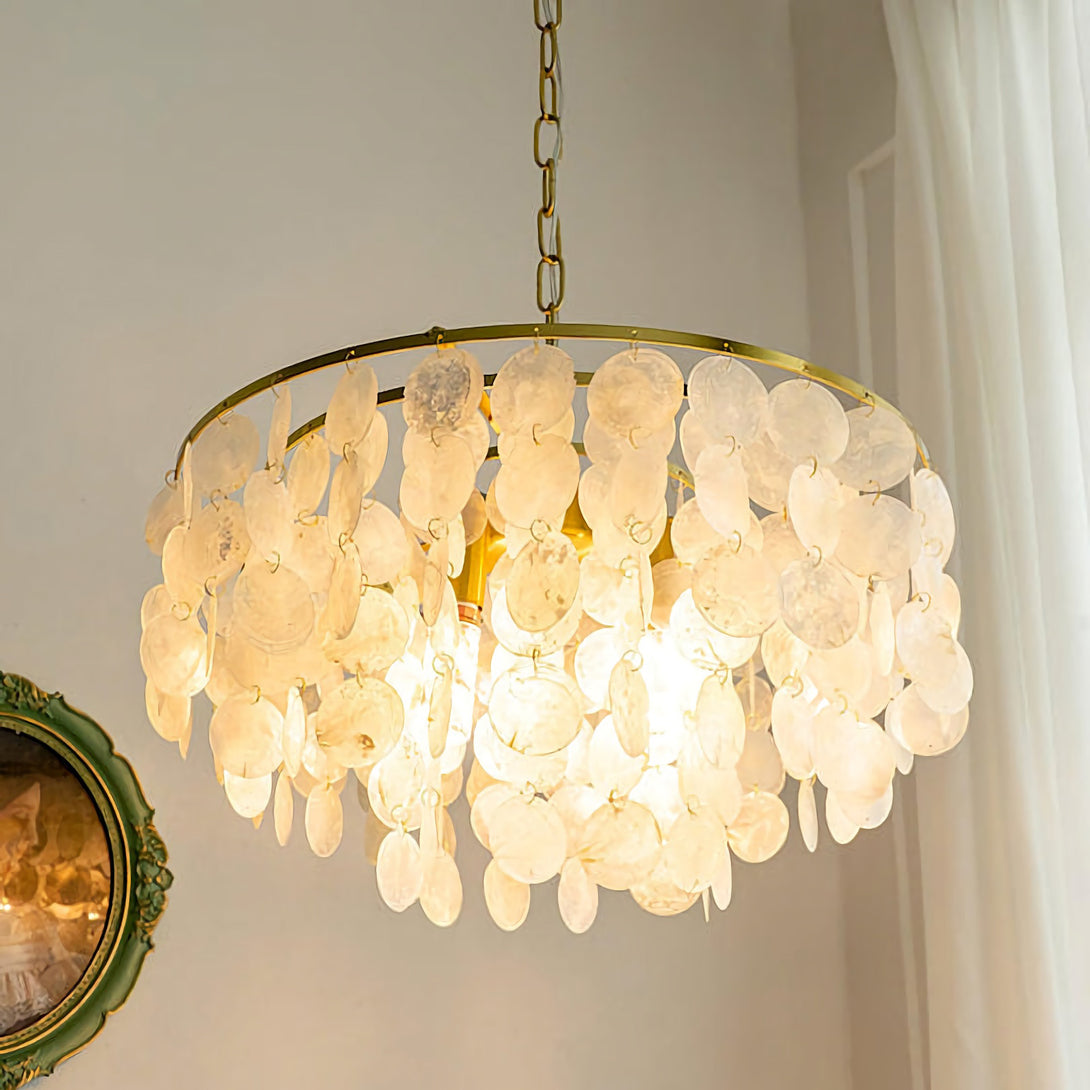 The Shell Wind Chime Chandelier by korewolamp captures the soothing spirit of coastal living with its cascading layers of natural shells. Each delicate piece catches the light and sways gently, evoking the calm rhythm of an ocean breeze. Suspended from a sleek golden frame, it blends island-inspired serenity with refined elegance, making it a perfect statement for patios, gardens, or indoor spaces seeking a touch of seaside charm. More than just lighting, it brings an enchanting, tranquil atmosphere to your home.