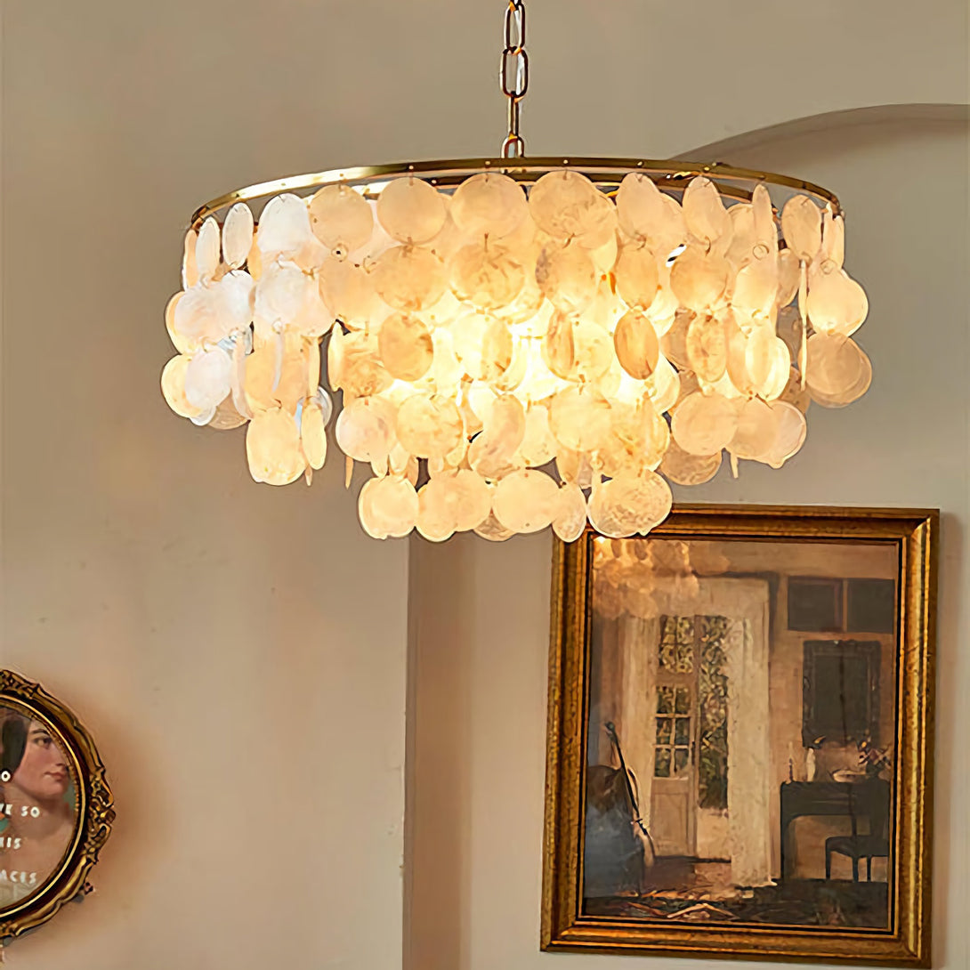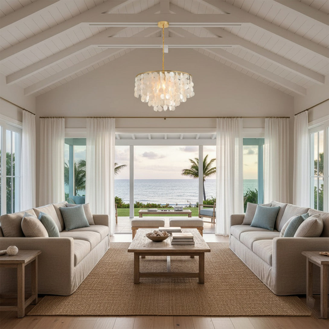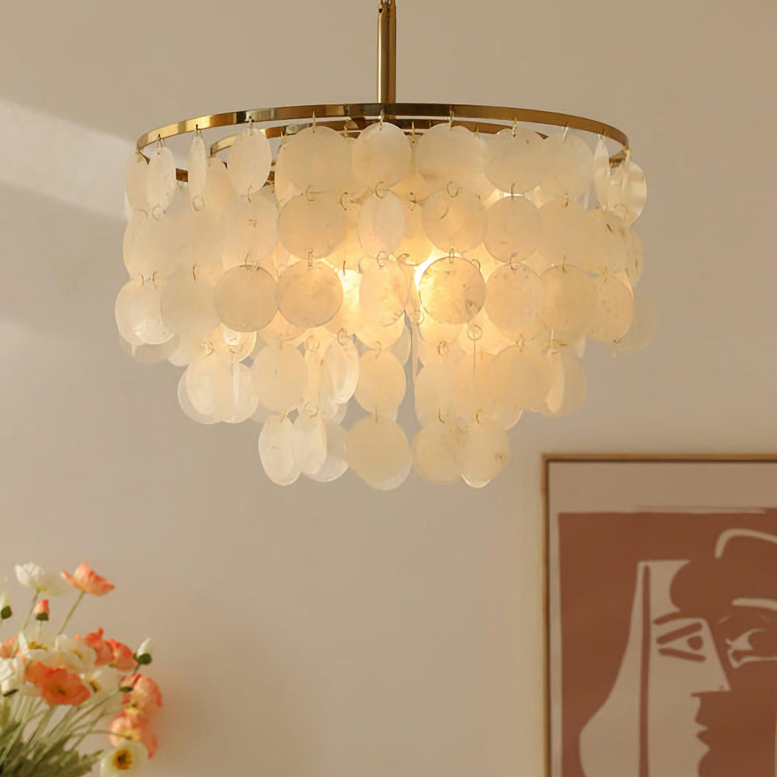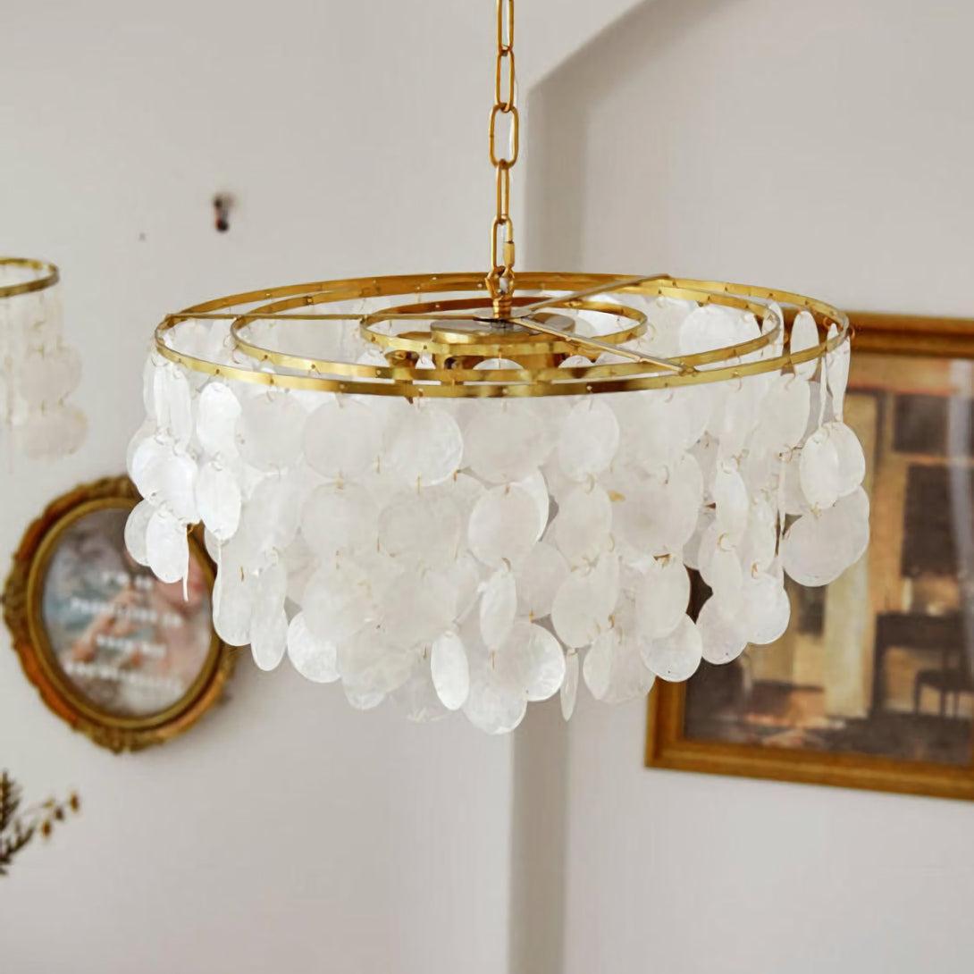 The Shell Wind Chime Chandelier by korewolamp captures the soothing spirit of coastal living with its cascading layers of natural shells. Each delicate piece catches the light and sways gently, evoking the calm rhythm of an ocean breeze. Suspended from a sleek golden frame, it blends island-inspired serenity with refined elegance, making it a perfect statement for patios, gardens, or indoor spaces seeking a touch of seaside charm. More than just lighting, it brings an enchanting, tranquil atmosphere to your home.