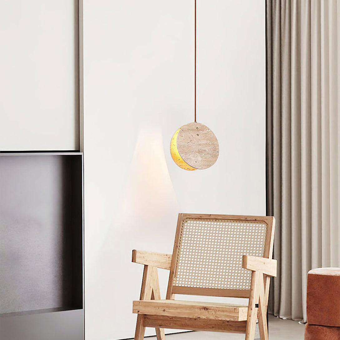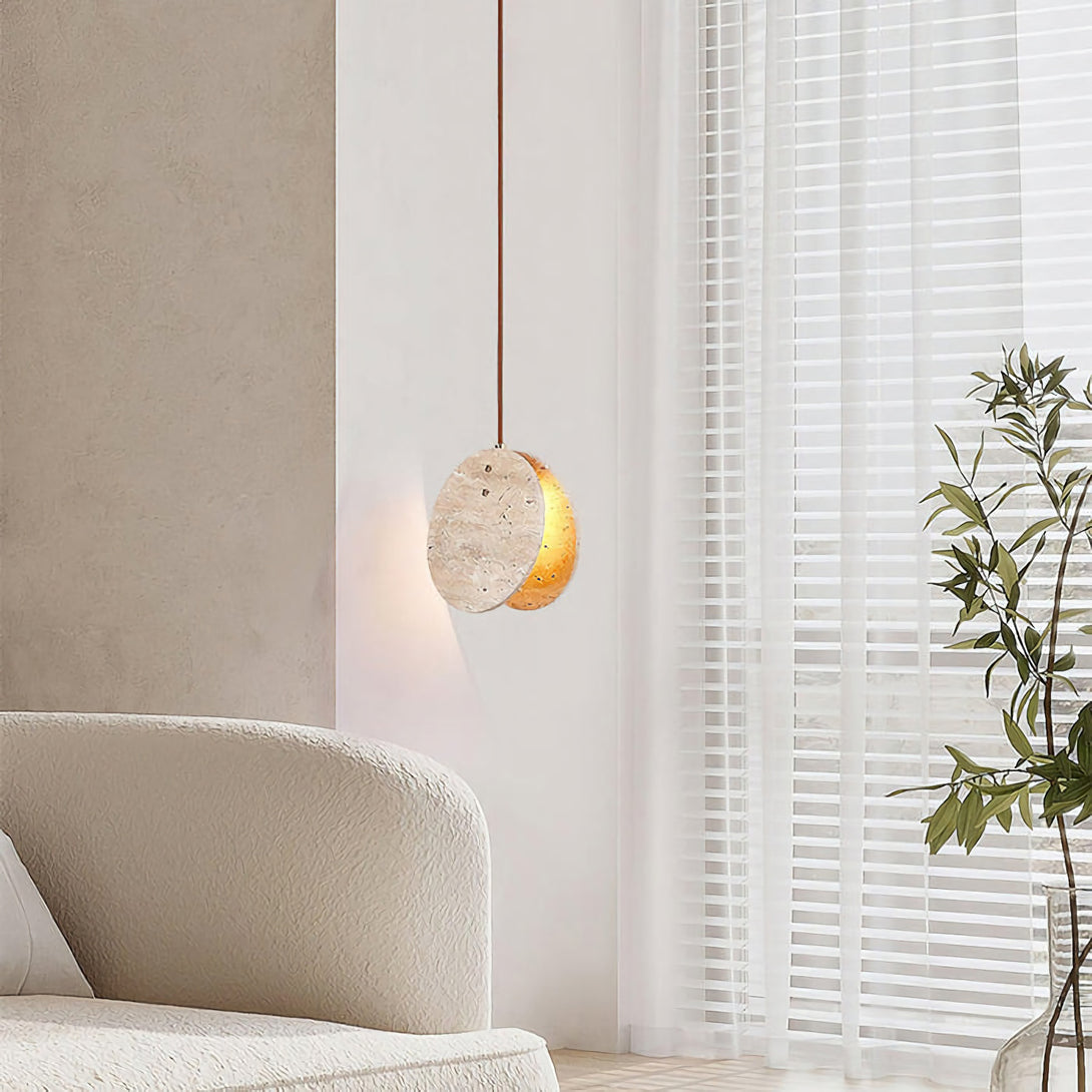 The Travertine Disc Pendant Lamp from korewolamp showcases the timeless elegance of natural stone paired with modern minimalism. Its smooth travertine disc gently diffuses light, casting a warm and refined glow that enriches living rooms, dining areas, or bedrooms. Inspired by the tranquil essence of the solstice, this pendant creates a serene ambiance while serving as a sculptural focal point. Blending organic texture with contemporary design, it elevates any space with understated sophistication.