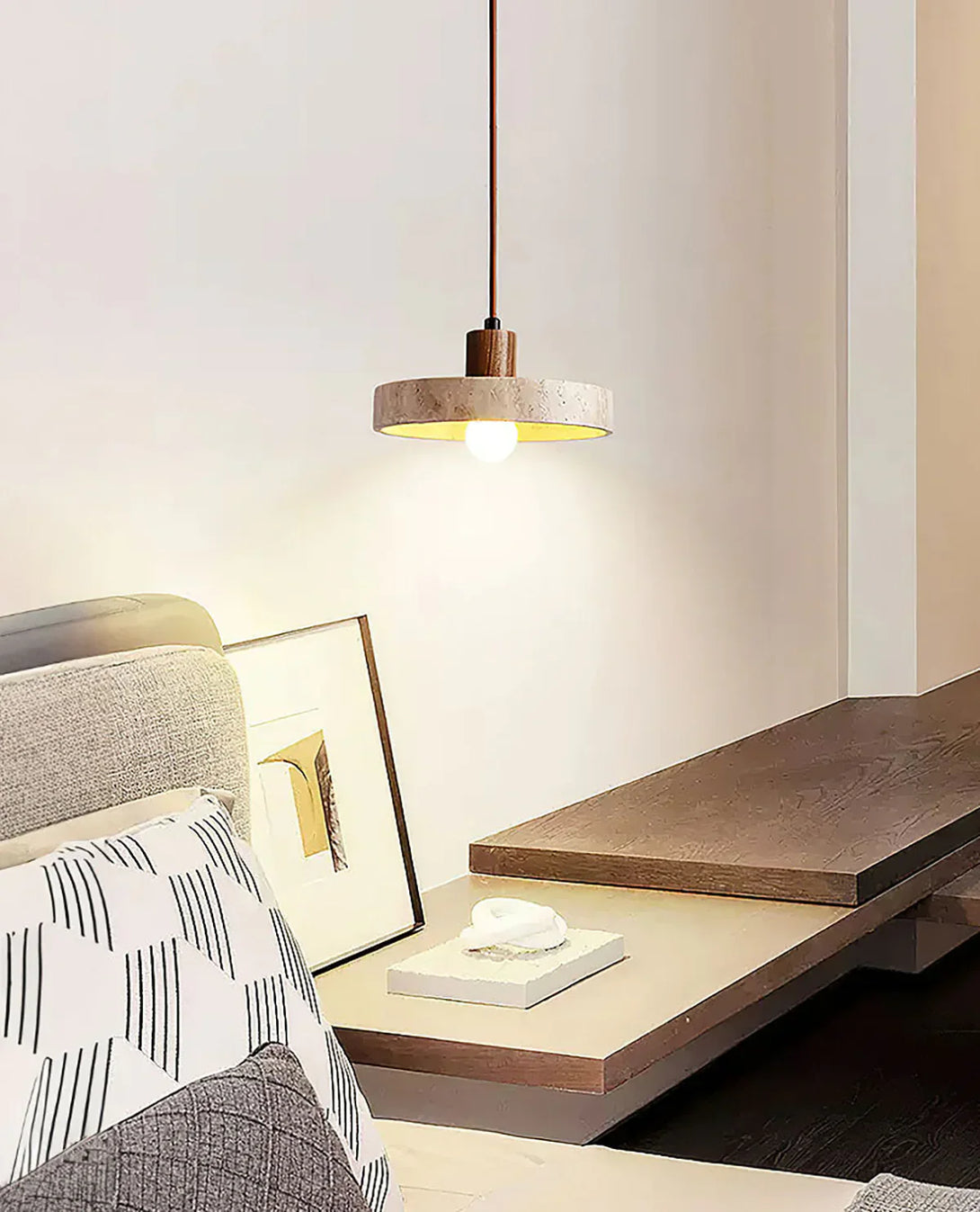 Experience the perfect balance of organic materials and clean design with the Piedra Pendant Light. Its smooth travertine ring and warm wooden base create a stunning blend of textures. The carefully crafted wood and stone allow for a soft, glowing light to radiate through the frosted globe, making it a must-have focal point for any room.